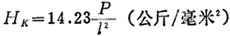 是用对棱角为170°30′和130°的金刚石四棱锥微小压入试样而测定的硬度。设在试样面上压出菱形凹坑时的荷重为Pkg,用根据凹坑的长对角线长度lmm所求出的凹坑投影面积去除荷重P,所得值表示努普硬度