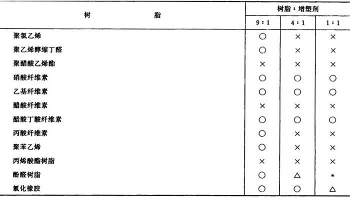〇=相容 ×=不相容 △=相容但薄膜发粘 *=不形成薄膜