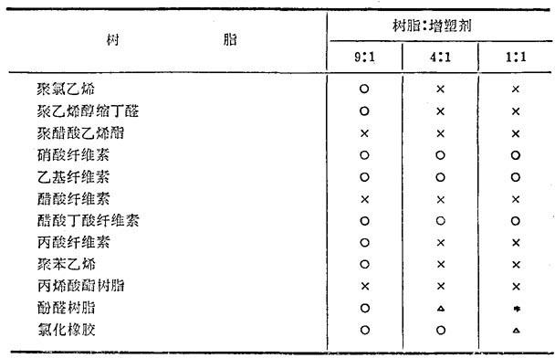 O=相容 x=不相容 △=相容但薄膜发粘 *不形成薄膜