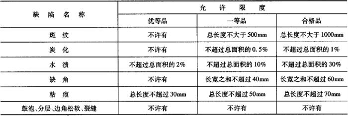 释义 | 硬质木纤维瓦楞板 1.术语(表4-71) 表4-71 硬质木纤维瓦楞板的相关术语 2.技术要求 1)硬质木纤维瓦楞板按外观质量和物理力学性能分为优等品、一等品和合格品三个等级。 2)外形尺寸与极限偏差应符合表4-72的规定。 表4-72 硬质木纤维瓦楞板的外形尺寸与极限偏差要求mm 3)外观质量应符合表4-73的规定。 表4-73 硬质木纤维瓦楞板的外观质量要求 4)物理力学性能应符合表4-74的规定。 表4-74 硬质木纤维瓦楞板的物理力学性能 |