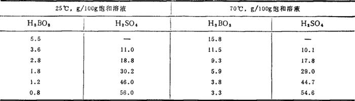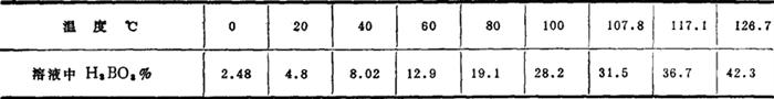 一、物理性质 硼酸的化学成分是B2O3·3H2O,按重量计算,由56.32%的B2O3和43.68%的水组成。由图1-1-11可看出:硼酸在水中的溶解度随温度的上升而增大,加热到70~100℃时,逐渐失水而成偏硼酸(HBO2);到150~160℃时,成为焦硼酸;到300℃时成为硼酸酐(B2O3)。 图1-1-11 H2O-B2O3体系相图 H2O-B2O3体系的熔点: 25℃时,HBO2(Ⅰ)密度=2.49g/cm3 HBO2(Ⅱ)密度=2.045g/cm3 HBO2(Ⅲ)密度=1.784g/cm3 硼酸为白色粉末状结晶或三斜轴的鳞片状带光泽结晶,有滑腻手感,无臭味。溶于水、乙醇、甘油、醚类及香精油。水溶液呈弱酸性:第一个氢的离解常数K=6.4×10-10(25℃)。0.1mol/L的硼酸溶液pH为5.13。硼酸对人体有害,内服影响神经中枢。其他物理数据为: 相对密度 15℃ 1.435; 水溶液相对密度 晶体机构; a1=0.7039nm α1=92.58° a2=0.705nm α2=101.17° a3=0.6578nm α3=119.83° 原子间距: B-O=0.1361nm O-H=0.088nm O…H=0.184nm O-H…O=0.272nm 蒸气压(水蒸汽压力为101,325Pa): 109℃ 82.66Pa 129℃ 360Pa 142℃ 840Pa 159℃ 1155.9Pa 180℃ 2,000Pa 硼酸溶液的蒸气压降低; 注:①蒸汽压降低值△P=100(760-PH2O)/M×760。 硼酸分解成HBO2-Ⅱ和HBO2-Ⅲ时的蒸气压: 水中溶解度: 液氨中溶解度:25℃ 1.92g H3BO3/100g NH3; 蒸发去氨后得 NH4HB4O7; 硫酸中的溶解度: 注:其他温度数据见:W.F.Link,Solubilities of Inorganic and Matalorganic Compcunds,Vo1.1,D.Van Nostrand Co.,Princeton,New Jersey 有机溶剂中的溶解度: H3BO3-MgCl2互溶系统: H2O2对H3BO3溶液pH的影响: 在甘油-戊醇中的分配系数(25℃): 熔点 169±1℃转化为HBO; 沸点 300℃失去 比热: 硼酸pH值: 在电介质溶液中的溶解度: 注:H3BO3与KCl、NH4C1、NaCl、NH4OAc、Na2CO3、K2SO4、Na2HPO4、NaH2PO4、CuSO4、FeCl3、AlCla、无机酸、(NH1)2HPO4、NH4H2PO4、NaHCO3、(NH4)2SO4、Zn(OAc)2、HOAc、NH3及苯胺的溶解度数据以及在其他化合物中的溶解度数据可见Linke:“Solubilities of Inorganic and metal organic Compounds”Vol,IP.1098~1101,P.261~279。 溶解热ΔH溶解100mol水: 22.18KJ/mol; 热力学数据: 不同温度下的热容,熵,焓: 折射率: α=1.337,β=1.461,γ=1.462; 导电率: 电离常数: 注:H3BO3浓度自0.1~0.0lN。 磁敏感性: 18℃ -0.69×10-6GS(高斯)。 二、化学性质 硼酸与苛性钠相作用,可生成硼砂:4H3BO3+2Na(OH)→Na2B4O7+7H2O。硼酸与苛性钠及过氧化氢作用,可得过硼酸钠结晶;2H3BO3+Na(OH)+H2O2+H2O→NaBO3·4H2O;硼酸与过氧化钠混合后,徐徐加入冷水中,经酸处理(酸化剂为HCl、H2SO4及CO2等),也得过硼酸钠结晶: 2H3O3+Na2O2+HCl+4H2O→NaBO3·4H2O+NaCl+2H2O,2H3BO3+3Na2O2+CO2+8H2O→2NaBO3·4H2O+Na2CO3+3H2O;硼酸与适量甲醇,徐徐加热,则得硼酸甲脂:H3BO3+3CH3OH→B(OCH3)3+3H2O。 三、用途 硼酸大量用于玻璃工业(光学玻璃、耐酸玻璃、耐热玻璃、绝缘材料的玻璃纤维),可以改善玻璃制品的耐热、透明性能,提高机械强度,缩短熔融时间。在搪瓷、陶瓷工业中,用以增强搪瓷产品的光泽和坚牢度,也是釉药及颜料的成分之一。在医药工业、冶金工业中作添加剂、助熔剂;硼钢硬度强,轧延性能良好,可以代替镍钢。硼酸有防腐特性,可作防腐剂,如木材防腐。金属焊接、皮革工业、照相、染料制造、耐热防火织物、人造宝石、电容器及化妆品的制造方面都用到它;还可用作杀虫剂、催化剂。在农业上作含硼微量元素肥料,对许多作物有肥效,可提高油菜籽的含油率。由硼酸可制造多种硼化物,广泛用于国防和其他工业部门及科研单位。 四、质量标准 我国硼酸的国家标准(GB538-82)适用于工业硼酸产品。主要用于玻璃制品、搪瓷制造、化工和建材工业等。 分子式:H3BO3;分子量61.83(按1979年国际原子量)。 外观:应为白色粉末状结晶或三斜轴面的鳞片状带光泽结晶。 化学指标:符合表1-1-43要求。 表1-1-43 硼酸化学指标 注:由井盐卤水法和盐酸法生产的硼酸,其氯化物含量允许一级品不大于0.10%;二级品不大于0.15%,由碳氨法生产的硼酸,其氨(NH3)含量一级品不大于0.50%;二级品不大于0.90%。 美国国家标准学会(ANSI)硼酸标准(照相级): 1.感观指标:硼醇是白色晶体粉末或颗粒。 2.危害性:人吸入硼酸,能引起呕吐泻肚;应防止吸入和皮肤长时接触。 3.化学指标:硼酸含量最低99.5%(按重量); 重金属(以Pb计)含量最多不超过0.005%; 铁离子含量最多不超过0.0002%; 对硝酸铵银的反应,和液体硼酸状态均须通过试验。 日本硼酸(试剂)国家标准(JIS K8863)见表1-1-44。 表1-1-44 日本硼酸(试剂)国家标准 前苏联硼酸国家标准(ГOCТ18704-78),见表1-1-45。 表1-1-45 前苏联硼酸国家标准 注:①见ГОСТ18704-78的说明. |