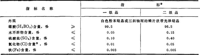 释义 | 硼酸 别名 原硼酸 分子式 H3BO3 分子量61.83 性能 硼酸是氧化硼的水合物(B2O3·3H2O),为白色粉末状结晶或三斜轴面的鳞片状带光泽结晶。相对密度1.435(15℃),熔点169±1℃,同时分解。溶于水、乙醇、甘油和乙醚。水溶液呈弱酸性反应。在300℃失去水而成硼酐。 质量规格 GB538-82 注:①由井盐卤水法和盐酸法生产的硼酸,其氯化物含量允许一级品不大于0.10%,二级品不大于0.15%. ②由碳酸法生产的硼酸,其氨(NH3)食量,一般不大于0.50%,二级品不大于0.90%. 用途 有轻微的消毒和收敛作用,亦有防腐作用,可用于化妆品配方中和调节酸碱度。主要用于玻璃制品、搪瓷制造、陶瓷等,也广泛用于医药、冶金、皮革、染料、农药、肥料、纺织、化工、建材等工业。 包装贮运 装于内衬塑料袋的编织袋或麻袋中,净重50kg。应贮于干燥清洁处,不得露天堆放,防止雨淋和受潮。 国内生产厂 北京化工八厂、天津红旗化工厂、上海嘉定硼砂厂、辽宁营口化工厂、河北张家口化工厂、河南开封化工一厂、江苏无锡红星化工厂、湖南长沙湘江化工厂、陕西西安沪河化工厂、青海化工厂。 |