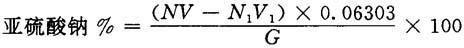 释义 | 碱性亚硫酸钠法蒸煮液的分析 近年来用碱性亚硫酸钠法蒸煮非木材原料,越来越受到人们的重视。制浆时蒸煮液常用固体亚硫酸钠加碱(Na2CO3或NaOH)配制而成。由于亚硫酸钠不稳定,极易氧化,蒸煮时一般多采用即时称取固体亚硫酸钠溶解后送入蒸煮锅内。但亚硫酸钠溶液不宜久存,使用前必须再标定,有的厂甚至直接加固体入锅。 (1)原理 用过量的碘与亚硫酸钠反应,然后在酸性条件下用硫代硫酸钠标定剩余的碘。 (2)测定方法与结果计算 准确称取试样0.25g(称准至0.0001g)置于250ml锥形瓶中,于该瓶中事先加入0.1mol/L碘标准溶液50ml及蒸馏水30~50ml,混合后静置5min,加入浓盐酸1ml、混匀,以0.1mol/L硫代硫酸钠标准溶液滴至淡黄色时加5ml淀粉指示剂,继续滴至蓝色消失。 式中:V——加入的碘标准溶液量(ml); N——碘标准溶液的浓度(mol/L); V1——滴定时耗用的硫代硫酸钠标准溶液量(ml); N1——硫代硫酸钠标准溶液的浓度(mol/L); 0.06303——与1ml1mol/L碘溶液相当的亚硫酸钠量(g); G——试样重(g)。 |