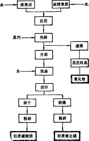 释义 | 碳氨法 碳氨法的原料是高浓度的苦卤、浓厚卤或高温盐溶浸液。使用的碳氨是碳酸氢氨、碳化氨水或直接向卤水中通入氨气和二氧化碳气体,以碳氨代替纯碱与卤水中的氯化镁或硫酸镁发生反应,生成相应的碳酸镁。反应式如下: 1.含MgCl2和MgSO4的卤水与NH4HCO3溶液反应: MgCl2+2NH4HCO3=Mg(HCO3)2+2NH4Cl MgSO4+2NH4HCO3=Mg(HCO3)2+(NH4)2SO4 2.若直接向卤水中通入氨气和二氧化碳,反应如下: 4MgCl2+8NH3+3CO2+8H2O=3MgCO3·Mg(OH)2·3H2O↓+8NH4Cl 3.生成的MgCO3·3H2O和Mg(HCO3)2热解后得碱性碳酸镁: Mg(HCO3)2+2H2O=MgCO3·3H2O+CO2↑ 4.碱性碳酸镁焙烧得轻质氧化镁: 碳氨法制取轻质碳酸镁和轻质氧化镁的工艺流程见图6-5-9。 图6-5-9 碳氨法制取轻质碳酸镁和轻质氧化镁的工艺流程图 工艺条件控制如下: (1)原料液的浓度和反应温度 碳酸氢氨在水中的溶解度见表6-5-5。 表6-5-5 碳酸氢氨在水中的溶解度 由表可见,碳酸氢氨的溶解度随温度的升高而增大;超过35℃时碳酸氢氨易分解成氨气和二氧化碳。故配制碳酸氢氨饱和溶液时,温度不宜超过35℃,要根据温度的不同调整投料比例。 碳酸氢氨与卤水中镁离子反应后,如水量不足,在碳酸氢镁热解时易使料浆凝聚固结,影响操作,洗涤氯根也较困难。另外,体系中NH4+浓度如过高,会增大碱性碳酸镁的溶解度,从而降低镁的转化率;如浓度过低,热解时热量消耗增大,并给母液的处理增加困难。综合考虑,卤水含镁量以40g/L左右较好。可在常温下反应。 卤水与碳酸氢氨溶液的投料比,以镁、氨等当量比为好。如碳酸氢氨过量较多,将生成(NH4)2-CO3·MgCO3·4.5H2O复盐。 (2)热解温度 镁离子与碳酸氢氨反应完成后,通入蒸汽升温热解,热解温度以85~95℃较好。 (3)脱水、洗涤与干燥 热解反应完成后,经澄清将母液放出,浆料可用真空过滤机或板框压滤机脱水,滤饼用淡水充分洗涤。洗后滤饼可用烟道气、蒸汽、电热或远红外烘干,干燥后的滤饼经过粉碎、筛分、包装得到轻质碳酸镁产品。 (4)焙烧 干燥后的滤饼在800℃左右的高温下进行焙烧。焙烧后的滤饼经粉碎,即为轻质氧化镁产品。 (5)母液处理 母液中含较多的NH4Cl或(NH4)2SO4,蒸发浓缩后可得到NH4Cl或(NH4)2SO4产品,NH4Cl质量可在95%以上。 按小型试验数据,用卤水-碳氨法每生产1t轻质氧化镁,消耗定额如下: 卤水(50gMg2+/L) 10.81m3 碳酸氢氨 5.2t 煤 llt 电 900kW·h 水 150m3 碳氨法生产轻质碳酸镁和轻质氧化镁,与纯碱法相比,工艺简单,产品视比容较高,碳酸氢氨的供应渠道较多,成本较低。但母液蒸发浓缩处理能耗较高。 |