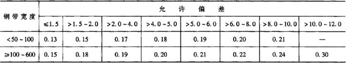 释义 | 碳素结构钢和低合金结构钢热轧钢带 1.分类、代号 按钢带边缘状态分为: 1)不切边钢带,EM; 2)切边钢带,EC。 2.尺寸、外形、重量及允许偏差 1)钢带厚度允许偏差应符合表5-46的规定。 表5-46 热轧钢带厚度允许偏差mm 注:表中规定的数值不适用于卷带两端7m之内没有切头尾的钢带。 2)钢带宽度允许偏差应符合表5-47的规定。 表5-47 热轧钢带宽度允许偏差mm 注:1.表中规定的数值不适用于卷带两端7m以内没有切头的钢带。 2.经协商同意,钢带可以只按正偏差定货,在这种情况下,表中正偏差数值应增加一倍。 3)钢带的厚度应均匀,在同一横截面的中间部分和两边部分测量三点厚度,其最大差值(三点差)应符合表5-48的规定。 4)供冷轧的钢带,应在合同中注明。轧制方向的厚度,在同一直线上任意测定三点厚度,其最大差值(同条差)应不大于0.17mm。 表5-48 钢带三点差mm 5)钢带长度不小于50m。允许交付长度30~50m的钢带,其重量不得大于该批交货总重量的3%。 6)钢带的镰刀弯每米不大于4mm。 3.力学性能 1)钢带的拉伸和冷弯试验应符合表5-49的规定。 表5-49 热轧钢带拉伸和冷弯试验 ①牌号Q195的屈服点仅供参考,不作交货条件。 2)进行拉伸和弯曲试验时,钢带应取纵向试样。 3)钢带采用碳素结构钢和低合金结构钢的A级钢轧制时,冷弯试验合格,抗拉强度上限可不作交货条件;采用B级钢轧制的钢带抗拉强度可以超过表5-49规定的上限50N/mm2。 4.表面质量 1)钢带表面不得有气泡、结疤、裂纹、折叠和夹杂。钢带不得有分层。其他表面缺陷允许存在,但深度和高度不大于厚度偏差之半。轻微的红色氧化铁皮允许存在。 2)表面缺陷允许清理,但清理后应保证钢带的最小厚度和宽度。清理处应平滑、无棱角。 3)在钢带连续生产的过程中,局部的表面缺陷不易发现并去除,因此允许带缺陷交货,但有缺陷部分不得超过每卷钢带总长度的8%。 |