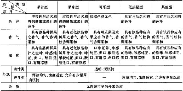 释义 | 碳酸饮料(汽水)(摘自GB/T10792) (一)主题内容与适用范围 本标准规定了碳酸饮料的产品分类、技术要求、检验方法、、检验规则和标签、包装、运输、贮存要求。 本标准适用于充有二氧化碳气的软饮料;不适用于由发酵法自身产生的二氧化碳气的饮料。 (二)术语 1.全糖碳酸饮料(全糖) 可溶性固形物含量不低于9.0%,并不添加任何甜味剂的碳酸饮料。 2.低糖碳酸饮料(低糖) 可溶性固形物含量不低于4.5%,允许添加甜味剂的碳酸饮料。 (三)产品分类 1.果汁型 原果汁含量不低于2.5%的碳酸饮料。如橘汁汽水、橙汁汽水、菠萝汁汽水或混合果汁汽水等。 2.果味型 以食用香精为主要赋香剂以及原果汁含量低于2.5%的碳酸饮料。如橘子汽水、柠檬汽水等。 3.可乐型 含有焦糖色素、可乐香精、水果香精或类似可乐果、水果香型的辛香和果香混合香气的碳酸饮料。无色可乐可不含焦糖色素。 4.低热量型 以甜味剂全部或部分代替糖类的各型碳酸饮料和苏打水,其热量不高于75kJ/100mL。 5.其他型 除上述四种型以外的含有植物提取物或非果香型的食用香精为赋香剂的碳酸饮料。如姜汁汽水、沙示汽水等。 (四)技术要求 1.原辅材料要求 原辅材料应符合GB10791的规定。 2.感官要求 感官要求应符合表5-2-8的规定。 表5-2-8 碳酸饮料感官指标 3.净含量 净含量公差应符合表5-2-9的规定。 表5-2-9 碳酸饮料净含量误差 4.理化指标 理化指标应符合表5-2-10的规定。 表5-2-10 碳酸饮料理化指标 5.卫生指标 应符合GB2759.2的规定。 (五)检验方法 本试验所用水系指去离子水或蒸馏水,所用试剂除特别注明外均为分析纯。 1.感官检验 (1)色泽、外观及杂质 浅色的玻璃瓶和塑料瓶装样品,迎光观察其色泽、外观,然后倒置于明亮处,观察其杂质;深色的玻璃瓶和塑料瓶(罐)、金属罐装样品需充分摇匀后,取约100mL于洁净的样品杯(或200mL烧杯)中,迎光观察其色泽、外观及杂质。 (2)香气及滋味 开启包装容器后,嗅其香气,品尝其滋味,检查有无异味。 2.净含量 温度在(20±2)℃的条件下,将样液沿容器壁缓慢倒入量筒中,1min后,读取泡沫下的容积数。 3.理化检验 (1)可溶性固形物 按GB12143.1规定的方法检验。 (2)二氧化碳气容量 ①检压器法(常规检验法):将汽水样品瓶(罐)用检压器上的针头刺穿瓶盖(或罐盖),旋开放气阀排气,待压力表指针回零后,立即关闭放气阀,将样品瓶(或罐)往复剧烈振摇约40s,待压力稳定后,记下兆帕数(取小数后二位)。旋开放气阀,随即打开瓶盖(或罐盖),用温度计测量容器内液体的温度。 根据测得的压力和温度,查碳酸气吸收系数表,见附录A(补充件),即得二氧化碳气容量的容积倍数。 附录A 碳酸气吸收系数表 (补充件) 表 A1 ②蒸馏滴定法(仲裁法):按GB12143.4规定的方法检验。 (3)总酸:按GB12456规定的方法检验,其中可乐型必须采用其第4章“电位滴定法”测定。产品中酸味剂如添加磷酸,则酸的换算系数为0.049,滴定终点的pH为8.75;如磷酸、柠檬酸混合使用时,则酸的换算系数为0.07,滴定终点的pH为8.30。 (4)咖啡因:见附录B(补充件)。 附录B 咖啡因的测定方法(比色法) (补充件) B1 原理 咖啡因的三氯甲烷溶液在波长276.5nm处有最大吸光度,利用朗伯-比尔定律,测定样品吸光度,计算样品中咖啡因的含量。 B2 试剂 除了写明的纯度外,所用试剂均为分析纯,水为蒸馏水或同等纯度的水(以下简称水)。 B2.1 混合液:5g无水亚硫酸钠(HG3-1078)与5g硫氰酸钾(GB648)溶于水中,稀释至100mL。 B2.2 1.5%高锰酸钾溶液:1.5g高锰酸钾(GB643)溶于98.5mL水中。 B2.3 15%磷酸溶液:15mL磷酸(GB1282)与70mL水充分混匀。 B2.4 25%氢氧化钠溶液:25g氢氧化钠(GB629)溶于75mL水中。 B2.5 三氯甲烷(GB682)。 B2.6 咖啡因标准储备液的配制:精确称取0.0500g的咖啡因标准品(熔点为238℃),精确至0.0001g,溶于三氯甲烷(B2.5)中,并用三氯甲烷定容至100mL。该储备液的浓度为0.5mg/mL。贮存于冰箱中。 B2.7 无水硫酸钠(HG3-123)。 B3 仪器、设备 实验室常用仪器: B3.1 紫外分光光度计。 B3.2 250mL分液漏斗。 B3.3 250mL比色管。 B4 试液的制备 B4.1 称取100g(精确至0.01g)可乐型饮料于200mL烧杯中,加热煮微沸10min,并时时用玻璃棒搅拌以除去样品中的二氧化碳气。冷却后,用蒸馏水补足至原来的量,搅匀后备用。 B4.2 准确移取上述制备好的试液(B4.1)20mL于250mL分液漏斗(B3.2)中,加入1.5%高锰酸钾溶液(B2.2)5mL,充分摇匀,静置5min后,在分液漏斗中上层为浅棕色液层,下层为棕黑色液层;再依次加入混合液(B2.1)10mL摇匀;15%磷酸溶液(B2.3)1mL摇匀;25%氢氧化钠溶液(B2.4)1mL摇匀;用2~3mL三氯甲烷(B2.5)洗涤分液漏斗的瓶口及塞子,再加入45mL三氯甲烷(B2.5),振摇1min(约100次),静置分层。 B4.3 将分液漏斗中的三氯甲烷层放入100mL容量瓶中,用2~3mL三氯甲烷(B2.5)洗涤分液漏斗的瓶口及塞子,再加入35mL三氯甲烷(B2.5),振摇1min,静置分层后,将三氯甲烷层放入原100mL容量瓶中,再添加2~3mL三氯甲烷洗涤分液漏斗的瓶口及塞子,洗涤液放入原100mL容量瓶中。用三氯甲烷定容至刻度,摇匀、备用。 注:每次振摇放气时,请注意三氯甲烷样液的损失。 B5 分析步骤 B5.1 标准曲线的绘制 准确移取咖啡因标准储备液(B2.6)0.5,1.0,1.5,2.0,2.5,3.0mL(相当于0.25,0.50,0.75,1.00,1.25,1.50mg咖啡因)于50mL容量瓶中,用三氯甲烷(B2.5)定容至刻度,摇匀。用1cm石英比色皿,以三氯甲烷(B2.5)为参比溶液,在276.5nm处测定其吸光度,然后以吸光度为纵坐标,浓度为横坐标,绘制标准曲