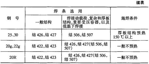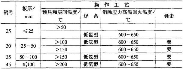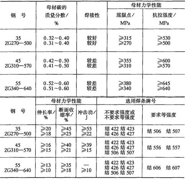 释义 | 碳钢焊接 10.2.1.1 碳钢的种类、成分和性能 碳钢是以铁为基体、碳为主要合金元素的铁碳合金,其中还含有少量有益元素锰和硅,以及少量杂质元素硫和磷. 碳钢按分类方法不同有以下名称: (1)按含碳量分: 低碳钢:ω(C)≤0.30%; 中碳钢:ω(C)=0.30%~0.60%; 高碳钢:ω(C)>0.60%. (2)按冶炼方法分: 平炉钢; 转炉钢:又分为氧气转炉钢和碱性空气转炉钢; 电炉钢. (3)按冶金过程中脱氧程度的不同分: 沸腾钢:在不完全脱氧情况下获得的钢,含氧量较高,硫、磷等杂质分布不均匀,焊接时产生热裂纹的倾向较大; 半镇静钢:介于沸腾钢与镇静钢之间; 镇静钢:含氧量较低,杂质分布均匀. (4)按用途分: 结构钢:用来制造各种金属构件和机器零件; 工具钢:用来制造各种工具(量具、刃具、模具). (5)按质量分,即根据钢中有害杂质硫和磷的含量分: 普通碳素钢 ω(S)≤0.050%,ω(P)≤0.045%; 优质碳素钢 ω(S)≤0.035%,ω(P)≤0.035%; 高级优质碳素钢 ω(S)≤0.030%,ω(P)≤0.035%. 常用碳钢的化学成分和力学性能见表10-1~表10-4. 表10-1 普通碳素结构钢化学成分(GB700—88) 注:1.沸腾钢ω(Si)不大于0.07%,半镇静钢ω(Si)不大于0.17%,镇静钢ω(S1)下限为0.12%. 2.Q235A和B级沸腾钢ω(Mn)上限为0.60% 3.D级钢应有足够的形成细晶粒组织的元素. 表10-2 碳素结构钢的力学性能(GB700—88) 注:1.屈服点和伸长率要求数值,皆对钢材厚度不大于16mm而言,厚度增加时,这些数值要求降低,见GB700—88. 2.Q195的屈服强度值仅供参考,不作交货条件. 3.冷弯试验中,B为试样宽度,a为钢材厚度,要求的弯心直径值系指钢材厚度为不大于60mm时,厚度增加,则弯心直径也增加,见GB700—88. 表10-3 优质碳素结构钢化学成分(GB699—88) 表10-4 优质碳素结构钢力学性能(GB699—88) 10.2.1.2 低碳钢焊接 1.低碳钢的焊接特点 低碳钢的焊接特点为: (1)低碳钢含碳量低.锰、硅含量少,通常情况下不会因焊接而引起严重硬化组织或淬火组织.一般不需采取特殊的工艺措施即可得到优质的焊接接头.低碳钢是最容易焊接的钢种,许多焊接方法都适用于低碳钢焊接,并能获得良好的焊接接头. (2)低碳钢的焊接应保证接头与母材强度相等. (3)当母材含碳量偏高或母材、焊接材料成分不合格时,焊接中有可能产生热裂纹,在工艺上应调整焊缝成形系数,或采用碱性低氢型焊条,以防止热裂纹的产生. (4)低碳钢焊接不需要预热,只有在气候严寒、构件刚性大时才需要考虑预热,例如焊接母材板厚大于30mm、焊接温度低于-10℃时,需要将母材温度预热到100~150℃. 2.焊接材料的选用 ①焊条 焊接低碳钢时大多使用E43××系列的焊条,因为低碳钢结构通常使用GB700—88的Q235牌号钢材(相当于旧国际GB700—79的A3或C3钢)制造,这类钢材的抗拉强度平均值为417.5MPa,而E43××系列焊条熔敷金属的抗拉强度不小于420MPa,在力学性能上正好与之匹配.表10-5为几种低碳钢焊接选用焊条举例. 表10-5 几种低碳钢焊接选用焊条举例 注:表中括弧内表示可以代用. ②埋弧焊焊丝和焊剂 低碳钢埋弧焊一般选用实芯焊丝H08A或H08E,它们与高锰高硅低氟熔炼焊剂HJ430、HJ431、HJ433或HJ434配合,应用广泛.焊接时,焊剂中的MnO和SiO2在高温下与铁反应,Mn与Si得以还原,过渡入焊接熔池.熔池冷却时,Mn和Si又成为脱氧剂,使焊缝脱氧,同时又可有足够数量余留下来,成为合金剂,保证焊缝力学性能.如果选用H08A或H08E焊丝而不是高锰高硅焊剂配合,则焊接时就不可能有足够数量的Mn和Si过渡入熔池.所以,如果焊剂为无锰、低锰或中锰型,则焊丝应选用H08MnA或其他合金钢焊丝.几种低碳钢埋弧焊常用焊接材料的选择举例见表10-6. 表10-6 几种低碳钢埋弧焊常用焊接材料选择举例 10.2.1.3 中碳钢焊接 1.中碳钢的焊接特点 中碳钢的焊接特点为: (1)中碳钢碳的质量分数为0.30%~0.60%,当碳的质量分数接近0.30%而含锰量不高时,焊接性良好.随着含碳量的增加,焊接性逐渐变差. (2)热影响区容易产生低塑性的淬硬组织,钢中含碳量越高,板厚越大,淬硬倾向也越大. (3)焊接时,相当数量母材会熔化进入焊缝,使其含碳量增高,容易产生焊缝热裂纹.特别是硫的含量控制不严时,热裂纹更易显示出来.这种热裂纹在弧坑处更为敏感.此外,由于含碳量增高,气孔敏感性也增大. 2.焊接材料的选用 选用碱性低氢型焊条.由于这类焊条抗冷裂纹和抗热裂纹的能力较强,焊接中碳钢时应尽可能选用碱性低氢型焊条,如结507、结607. 如果选用碳钢焊条或低合金钢焊条,而焊缝与母材并不要求等强度时,可以选用强度等级稍低的低氢焊条.通常,焊条强度等级可以比母材强度等级低一档,例如,母材为490MPa级,则焊条可用结426或结427,以代替结506和结507. 根据具体条件,也可采用钛铁矿型或钛钙型焊条,但一定要有严格的工艺措施配合,如严格控制预热温度和尽量减少母材熔深(减少焊缝含碳量),才能获得满意结果.这种焊条一般用于不重要结构件的焊接. 特殊情况下,亦可采用铬镍不锈钢焊条焊接.这时工件不需预热,而焊缝奥氏体金属塑性良好,可以减少焊接接头应力,避免热影响区冷裂纹产生.用于中碳钢焊接的铬镍不锈钢焊条牌号有奥102、奥107、奥302、奥307、奥402、奥407等.采用此种焊条时,应采用小电流、多层焊. 中碳钢焊接用焊条举例如表10-7所示. 3.中碳钢焊接工艺要点 中碳钢焊接工艺要点为: (1)中碳钢焊接需要预热和层间温度,以降低焊缝和热影响区冷却速度,从而防止产生马氏体.预热温度取决于碳当量、母材厚度