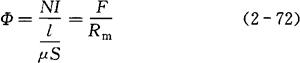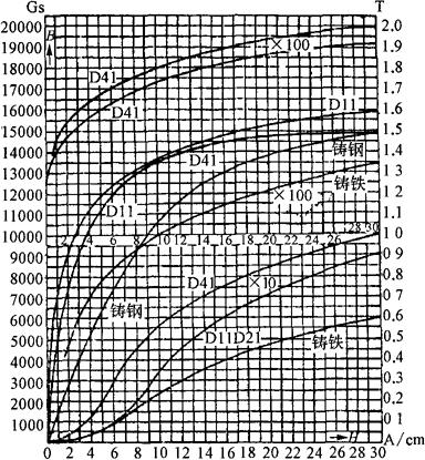释义 | 磁与磁路 1.磁场的基本物理量 (1)磁感应强度 磁感应强度是表示磁场中某点磁场的强弱和方向的物理量,它是一个矢量。磁感应强度用符号B表示。磁场中某点磁感应强度B的方向就是该点磁力线的切线方向,即放在该点的小磁针北极(N极)所指的方向;其大小的数学表达式为: 式中 l——与磁场方向垂直的导体在磁场中的有效长度(m); I——通过导体中的电流(A); F——通电导体受到的电磁力(牛顿,用符号N表示); B——磁感应强度(特斯拉,用符号T表示) 也就是说,一根与磁力线垂直的1m直导体,如果通过1A电流时,所受到的电磁力为1N,则磁感应强度就是1T。 磁感应强度另一个较小的单位是高斯,用符号GS表示。两者的关系是: 1T=104GS 如果磁场中各处的磁感应强度B相同,则这样的磁场叫做均匀磁场或匀强磁场。 (2)磁通 磁通是描述磁场在某一范围内分布情况的物理量,把磁感应强度B和与它垂直的某一截面积S的乘积,称为通过该面积的磁通。磁通用符号Φ表示,其数学表达式为: Φ=BS (2-54) 式中 B——磁感应强度(T); S——垂直于磁场方向截面积(m2); Φ——磁通(韦伯,用符号Wb表示)。 磁通的数学表达式也可写成: 上式表明,磁感应强度的大小等于与磁场方向垂直的单位面积上的磁通。所以磁感应强度B又称为磁通密度,简称磁密。 磁感应强度单位的另一种等效形式是Wb/m2,它和T的关系是: 1T=1Wb/m2 当磁感应强度B与作用平面S不垂直时,磁通的数学表达式为: Φ=B·S·sinα (2-56) 式中 α——磁感应强度B与作用平面S的夹角。 [例2-21] 在B=0.6T的均匀磁场中,有一面积为10-2m2的平面,求平面与B的夹角分别为0°、30°、60°90°时通过此平面的磁通。 [解] 因为Φ=BSsinα,所以: 当α=0°时, Φ=0.6×10-2×0=0; 当α=30°时, Φ=0.6×10-2×0.5=3×10-3(Wb): 当α=60°时, 当α=90°时, Φ=0.6×10-2×1=6×10-3(Wb)。 (3)磁导率 线圈管的磁性强弱,即磁感应强度的大小,不但与电流、匝数有关,而且与磁场中的磁介质有着密切的关系。不同的磁介质具有不同的导磁性能,通常用磁导率来表示磁介质的导磁性能,磁导率用符号μ表示,不同的媒介质具有不同的磁导率。 磁导率的单位是亨利/米(用符号H/m表示)。 由实验测得真空中的磁导率,用符号μ0表示,其大小为: μ0=4π×10-7H/m 任一磁介质的磁导率与真空中的磁导率的比值叫做相对磁导率,用符号μr表示,其数学表达式为: 相对磁导率的物理意义是:在其他条件相同的情况下,磁介质中的磁感应强度是真空中磁感应强度的若干倍。 根据相对磁导率μr的大小,可以把物质分为三类: ①反磁物质,其相对磁导率μr≤1,如铜、银等。反磁物质仅受到磁体非常微弱的排斥。 ②顺磁物质,其相对磁导率μr>1,如空气、锡、铝等。 ③铁磁物质,其相对磁导率 软磁材料磁滞回线很窄(铁磁材料在反复磁化过程中,磁感应强度B的变化总是滞后于磁场强度H的变化,这一现象为磁滞,所得的B-H曲线叫做磁滞回线),剩磁和矫顽力都很小,容易磁化也容易去磁,磁滞损耗小,如硅钢片、坡莫合金、铁淦氧等。 硅钢片主要用于电动机、变压器、电磁铁中。 坡莫合金用于高精度的交流仪表及小型变压器中。 铁淦氧磁体(铁氧体)和磁介质(铁粉芯)被广泛用于无线电电子工业和计算机技术方面。如收音机中的磁性天线(磁棒),电视机中的偏转线圈的磁芯都属于这种材料。 硬磁材料磁滞回线较宽,具有很强的剩磁和较大的矫顽力,必须采用较强的外磁场才能使它们磁化,但一经磁化,取消外磁场后,磁性不易消失。主要用于制造各种形状的永久磁铁和恒磁(如扬声器磁钢)。 矩磁材料磁滞回线呈矩形,在很小的外磁场作用下就能被磁化,并达到饱和,去掉外磁场后,磁性仍保持与饱和时一样。主要用于制造记忆元件(如电子计算机中的磁芯)。 (4)磁场强度 为了消除磁介质的影响,使磁路计算方便,而引入磁场强度这个物理量,磁场强度用符号H表示。磁场中任一点磁场强度的大小与磁介质的性质无关,只与产生磁场的电流及载流导体的空间布置情况有关。 磁场强度是一个矢量,其大小定义为磁场中某点的磁感应强度B与磁介质磁导率μ的比值,其数学表达式为: 磁场强度的单位是安/米(用符号A/m表示)。 磁场强度H的方向和所在点的磁感应强度B的方向相同。 2.电感及电感元件的串联和并联 (1)电感 用导线绕制的线圈叫做电感元件。当通过线圈本身的电流发生变化时,使穿过线圈回路的磁通发生变化,则线圈中产生一种阻碍电流变化的感生电动势,这种现象叫做自感。由自感产生的感生电动势叫做自感电势,用符号eL表示。 为了得到eL和外电流i之间的定量关系,把线圈的磁链(N匝线圈的磁通为线圈的磁链,用符号Ψ表示)和电流的比值叫做自感系数,又叫电感,用符号L表示,其数学表达式为: 式中 Ψ——电流i通过线圈时产生的自感磁链(Wb); i——通过线圈的电流(A); L——电感(亨利,用符号H表示)。 常用的电感单位还有毫亨(mH)和微亨(μH)。换算关系如下: 1mH=10-3H 1μH=10-3mH=10-6H 电感是表示线圈产生自感磁链本领大小的物理量,其大小取决于线圈的结构(匝数、尺寸)和铁芯的磁导率。几种典型结构电感元件电感的计算公式如下: ①长螺管线圈(线圈长度l与线圈骨架半径R之比即 式中 μ——磁介质的磁导率(H/m); N——线圈的匝数; S——螺管线圈的截面积(m2); l——线圈的长度(m); L——电感(H)。 ②短螺管线圈 式中 D——线圈直径(m); d——线圈圆形导线直