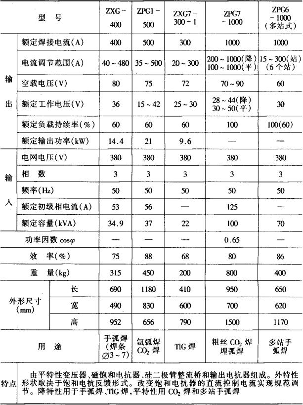 磁放大器式硅弧焊整流器的特点、用途及技术参数