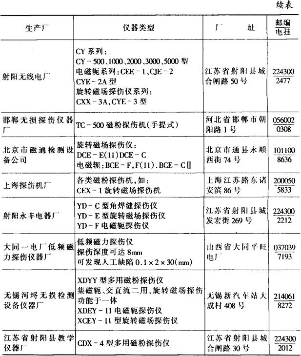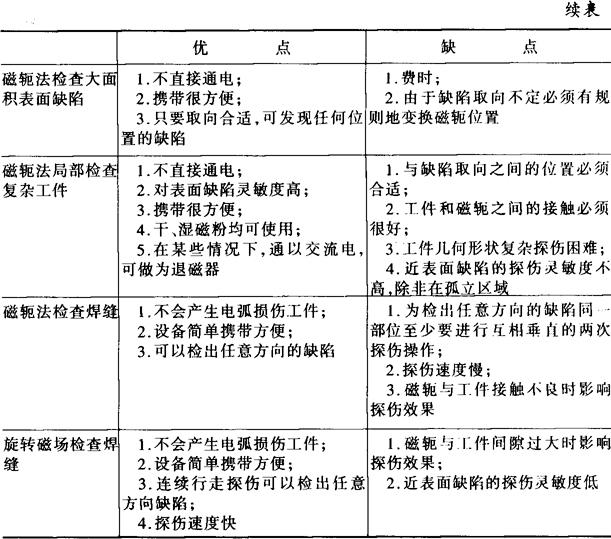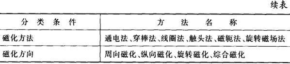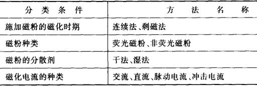 因分类条件不同,磁粉探伤可有多种类型,见表14-41。
