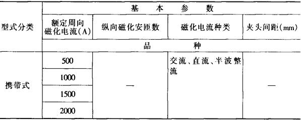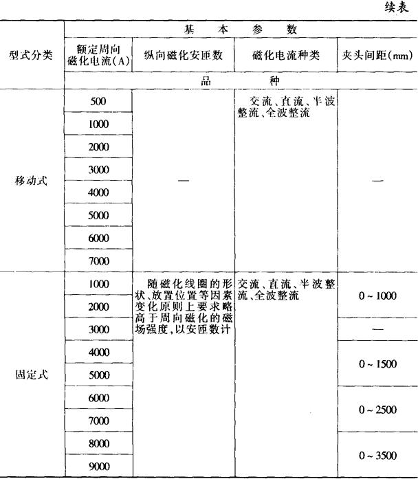 磁粉探伤机一般可分为携带式、移动式和固定式三类,其基本参数见表14-45。