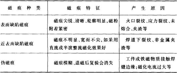 焊缝磁痕种类、特征及产生原因见表14-47。缺陷磁痕按形状分类及特征见表14-48。