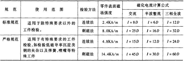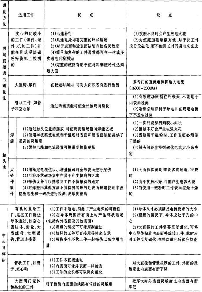 释义 | 磁粉检测 铁磁性材料被磁场强烈磁化后,如在材料表面或近表面存在垂直于磁力线方向的缺陷时,会造成部分磁力线外泄,形成漏磁场。对漏磁场施加磁粉或磁悬液,漏磁场会对磁粉产生吸引从而显示缺陷的痕迹,以便于观测。 磁粉探伤对铁磁性材料的表面缺陷检测灵敏度高,随着缺陷埋藏深度的增加,其检测灵敏度会迅速降低。磁粉探伤对奥氏体不锈钢、铝镁合金等非铁磁性材料不适用。 磁粉探伤是一种比较古老的无损检测方法,它广泛应用于钢铁材料的表面和近表面缺陷的检测,对裂纹、折叠等面状缺陷尤为灵敏。目前被广泛应用于锅炉压力容器、化工、电力、造船、航空和宇航部门的重要零部件的表面检测。 1.磁粉探伤的方法分类 (1)磁化 磁性物质在外加磁场作用下具有磁性的过程称为磁化。 磁性物质是由许多磁分子组成的,每个磁分子可以被当做一个小磁体,都具有一个N极和一个S极。磁性物质在没有被磁化时,小磁体在物质内部的排列杂乱无章,所以物质也不显示磁性。但物质被磁化以后,每个磁分子的N极都指向一个方向,S极指向另一个方向,使物质具有统一的N极和S极,物质在外部呈现磁性。 含碳量较高的钢是难以磁化的,但有较强的剩磁,它需要的矫顽磁场强度也较大,这种材料称为硬磁材料。硬磁材料的磁滞回线表现下述特征。 ①磁导率低——难以被磁化。 ②顽磁性强——剩磁强。 ③矫顽磁场强度高——需要高的反向磁场来消除剩磁。 含碳量较低的低碳钢则相反,这类材料称为软磁材料,它的磁滞回线特征为: ①磁导率高——易于被磁化。 ②顽磁性低——剩磁弱。 ③矫顽磁场强度低——需要低的反向磁场来消除剩磁。 (2)漏磁场: ①漏磁场的形成 铁磁材料在外磁场的作用下即可被磁化,在材料中产生磁力线的分布。在材料中如果存在与磁力线分布方向垂直的缺陷(如裂纹),则由于磁阻的增加,磁力线会在缺陷处发生弯曲,若缺陷位于材料的表面或近表面,而材料内部所能够容纳的磁力线数目是有限的,则磁力线弯曲后会逸出工件表面,在工件表面形成漏磁磁极,产生漏磁场。 ②影响漏磁强度的因素: a.外加磁场强度 铁磁材料磁化时,在饱和前施加在材料上的外加磁场强度越高时,则材料中所产生的磁感应强度也越高,材料中的磁力线分布也越密集。当工件表面存在缺陷时,则能使较多的磁力线弯曲,逸出工件表面,形成较高的漏磁场强度。 b.材料的磁导率 从磁化曲线和磁滞回线上可以看出,磁导率越高的材料越易被磁化,在一定的外加磁场强度下,材料中所产生的磁感应强度也越高,在表面和近表面处形成的漏磁场也越大,所以材料的磁导率愈高,漏磁场的强度也愈大。 c.缺陷的埋藏深度 当材料中的缺陷位于表面时,被弯曲的磁力线愈接近表面,逸出材料表面的磁力线也愈多。随着缺陷埋藏深度的增加,逸出材料表面的磁力线迅速减少,到一定的程度时,在材料表面没有形成漏磁场,而仅仅改变了磁力线的传播方向。所以缺陷埋藏深度愈小,漏磁场强度愈大。 d.缺陷的方向 当缺陷的方向与磁力线方向正好相垂直,缺陷能最有效地阻挡磁力线,使更多的磁力线弯曲,从而在材料表面形成漏磁场。如缺陷的方向完全平行于磁力线的方向,则有可能不会产生磁力线的弯曲,在材料表面就无法形成漏磁场。 由此可见,当缺陷方向完全垂直于磁力线的方向时所形成的漏磁场最大,随着角度的减小明显地下降。 e.缺陷的磁导率 若材料缺陷内部含有铁磁材料(如Ni、Fe)的成分,那么即使缺陷位于理想的方向上,缺陷也会在磁场的作用下被磁化,而不会使材料内磁力线弯曲而形成漏磁场。缺陷的磁导率对漏磁场的影响与材料的磁导率对漏磁场的影响正好相反,即缺陷的磁导率愈高,所产生的漏磁场强度愈低。 一般来讲铁磁材料中缺陷的磁导率是极低的,所以在磁化材料时缺陷一般不会被磁化,而只会阻挡磁力线形成漏磁场或磁力线的弯曲。 f.缺陷的尺寸和形状 缺陷的尺寸(沿工件厚度方向上尺寸)愈大,所阻挡的磁力线的数目就愈多,所以就愈易形成漏磁场,由此可推断缺陷尺寸愈大,漏磁场强度也愈大。 缺陷的形状(缺陷的宽度和高度的比值)对漏磁场的产生也有较大的影响。如缺陷高度(沿工件厚度方向上尺寸)很小,而宽度却较大时,由于阻挡磁力线的面积减少,从而降低了所产生的漏磁场强度。另外若缺陷的宽度很大,虽有一部分磁力线还有可能逸出表面,但由于空气的磁阻很大,磁力线也很难跨越这一“鸿沟”而形成漏磁场。一般来讲,当缺陷的宽度与高度之比大于1时,所形成的漏磁场强度明显下降。 (3)漏磁场对磁粉的吸引 磁场的磁极会吸引铁屑或铁粉,同样在表面产生漏磁场以后,也同时产生漏磁场的N极和S极,在缺陷的两边形成N极和S极。如果此时在工件上撒上一层铁粉或浇上磁悬液,铁粉就会在漏磁场中被磁化,磁粉的两极与缺陷两侧的N、S极相互作用,磁粉被吸附在缺陷所在区域,形成磁粉堆积而显示缺陷。根据磁粉堆积部位、形状和大小等情况可判断缺陷的性质和大小。 (4)磁粉探伤方法分类如下: 表1-12-15 磁粉探伤方法分类 (5)磁粉探伤设备 常用磁粉探伤设备型号及技术参数可参见JB/T8290-1998《磁粉探伤机》和ZBN70001《实验机与无损检测仪器型号编制方法》。 国产磁粉探伤机型号举例如下: CJE-1型:磁轭式交流磁粉探伤机.第一次设计。 CEW-9000型:交直