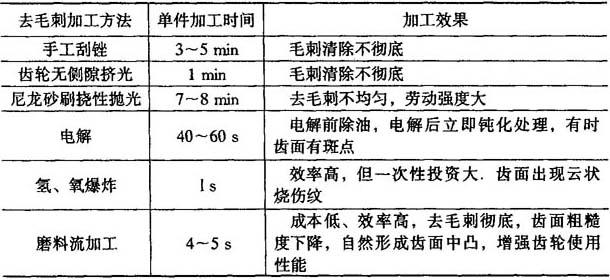 释义 | 磨料流加工的特点及其应用 9.6.3.1 磨料流加工的特点 (1)加工粗糙度低 磨料流加工中磨料的切削力来自磨料两侧的压力差,由于磨料的粒度很校故每一颗磨粒获得的压力很校一般不超过数克,因而不会在被加工工件表面造成划痕.又因粘性磨料的半流动性,当磨料遇到前进方向的较大障碍时,高分子介质的塑性和内聚力使其绕过障碍前进.另外,磨粒在受到前进方向压力差推动的同时,还受到侧面的压力,对工件表面产生挤压作用,因而磨料流加工表面比砂轮磨削表面的粗糙度要小得多.磨料流加工一般可将前道工序粗糙度降低3/4以上.目前可以达到的最佳表面粗糙度,Ra=0.04~0.05μm,即达到镜面.故磨料流加工特别适合于完整加工. (2)加工速度高 磨料流加工与手工操作相比加工时间可减少90%以上,一般加工一个零件只需几分钟到十几分钟.特别是对一些小型零件,可以多件同时加工,大大提高了加工效率. (3)加工精度高 磨料流加工的一般尺寸精度可达10~2.5μm. (4)可加工材料的范围广 磨料流加工几乎能加工所有的金属材料,包括铜、铝、普通钢、合金钢、模具钢、高速钢、不锈钢、硬质合金、钛等,还能加工陶瓷、硬塑料等非金属材料. (5)应用范围广 磨料流加工的机理决定它的应用范围较为广泛. 由于磨料流加工所用的粘性磨料呈半流形态,它可以与各种任意形状的被加工表面完全吻合,因而适宜于加工异形面、交叉孔、台阶孔等,这些正是有些加工方法所无法完成的. 磨料流加工过程中,当粘性磨料通过通道时,对通道不同部位表面的切削量是不一致的.粘性磨料通过直通道时,磨粒平动切削作用微弱,移动2m,只切除约0.001mm,只起抛光作用.而粘性磨料通过变截面通道和拐角时,磨粒转动切削作用增强,其切削量比磨料流对直通道表面提高百倍以上.这对工件切除毛刺、倒圆锐角极为有利. 9.6.3.2 磨料流加工的应用 磨料流加工的应用范围较广,主要应用范围如下. (1)广泛用于各种挤压模、冲裁模、拉丝模、引伸模等复杂型面的抛光.型腔模的加工要使用专用的辅具,以引导粘性磨料的流动. (2)对各种零件的复杂内外型面的抛光、去除棱边毛刺及倒圆锐角.例如各种齿轮齿面(直齿、斜齿、螺旋齿、伞齿等)、叶轮面等的完整加工. (3)对各种工件的小孔、窄缝、交叉孔、喷嘴小孔等进行抛光.但磨料流加工不适用于盲孔加工,因为盲孔阻碍粘性介质的流动. (4)可用于去除电火花加工或激光加工所产生的表面硬化层和表面微观缺陷. (5)可作为精密铸造、机械加工如拉削、镗削、磨削等的后道工序,即精密光整加工. 9.6.3.3 磨料流加工应用实例 现通过磨料流加工齿轮、去除毛刺并抛光齿面的应用实例,分析磨料流加工齿轮的结果和特点,并比较几种不同加工方法的加工效果. 某产品齿轮经机械加工后残留在齿面和端面交线处的毛刺厚约0.3mm,齿面粗糙度Ra=5μm.采用磨料流加工去除毛刺并抛光齿面,其加工装置如图9-36所示. 图9-36 齿轮磨料流加工去毛刺与抛光 加工结果: (1)毛刺被彻底清除,尖角被倒圆(手感不割不划). (2)齿面、齿根、齿顶的粗糙度普遍减校由Ra=5μm减小到Ra=1.25μm. (3)加工前齿面沿齿向是平直的,加工后出现沿齿向中鼓,即呈鼓形齿. 齿轮齿面粗糙度减小有利于提高齿轮传动的平稳性,减少振动和噪音.齿根表面粗糙度减校有利于提高齿根的抗弯曲疲劳强度.而在磨料流加工中自然形成的齿向中凸,可以起到齿轮修形作用,它使啮合斑痕出现在齿面中部,使荷载分布均匀,这可以提高齿面的抗压能力,同时有利于降低齿轮传动时发出的噪音. 磨料流加工齿轮与电解加工、尼龙砂刷挠性抛光、手工刮锉等加工方法相比,具有成本低、效率高、齿面粗糙度低、去毛刺彻底等特点,尤其是加工过程中自然形成的齿面中凸,提高了齿轮的使用性能,更是其独有的优势. 表9-12列出了几种齿轮去毛刺加工方法的比较. 表9-12 几种齿轮去毛刺加工方法的比较 |