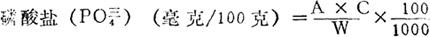 释义 | 磷的测定(钼蓝比色法) 磷具有重要营养学意义,测定方法一般采用钼蓝比色法。样品中的磷酸盐与酸性钼酸铵作用,生成淡黄色的磷钼酸盐,遇氯化亚锡生成亮蓝色的结合物——钼蓝。根据颜色深浅可以进行比色测定。 试剂 (1)钼酸铵溶液:称取25克钼酸铵〔(NH4)6·Mo7O24·4H2O〕,溶于15毫升水中,另将28毫升浓硫酸加到48毫升水中,冷却后两液合并以水稀释至100毫升。 (2)2.5%氯化亚锡甘油溶液:称取2.5克氯化亚锡〔Sncl2·2H2O〕,溶于100毫升甘油中,在热温水浴上促使其溶解,混匀后,贮于瓶中。 (3)磷酸盐标准溶液:称取0.7165克磷酸二氢钾(KH2PO4)溶于水中,移入1000毫升容量瓶中,并用水稀释至刻度。此溶液每毫升相当于500微克磷酸盐。吸取10.0毫升此溶液,置500毫升容量瓶中,加水至刻度,此溶液每毫升相当于10微克磷酸盐( 操作步骤 1.样品处理:同钙测定中样品处理。 2.标准曲线的绘制:分别吸取磷酸盐标准溶液(10微克/毫升),0.0、0.2,0.4,0.6,0.8,1.0毫升,分别置于50毫升比色管中,各加入20毫升水,2.0毫升钼酸铵溶液,0.25毫升氯化亚锡甘油溶液,然后用水稀释至刻度,混匀。在20分钟内用分光光度计于690nm波长处,测定其光密度。 以光密度为纵坐标,磷酸盐含量为横坐标,绘制标准曲线。 3.样品测定:吸取样液1~5毫升,置50毫升比色管中,加入20毫升水,以下操作同标准曲线绘制。测定其光密度。 4.计算: 式中:A:标准曲线并计算每毫升样品液含磷酸盐量(微克); C:样品液总体积(毫升); W:样品重(克); 1000:换算微克为毫克; 100:换算百分含量。 |