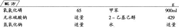 释义 | 磷酸三(2-乙基己醇)酯 制法 在一个2000ml的四颈烧瓶上安装好电动搅拌器、温度计、回流冷凝器和滴液漏斗,向瓶中加入900ml甲苯。并将2-乙基己醇加入四颈烧瓶中,开动搅拌,使其与甲苯形成均匀溶液。在15℃的温控条件下,将氧氯化磷缓慢滴加到瓶中。滴完后充分搅拌15min。然后30~35℃恒温,再将45%浓度的氢氧化钠水溶液滴入瓶中,反应6h。中间每隔30min采样一次,利用薄层色谱分析来观察反应进行情况。 将反应产物倾倒入烧杯中,维持在30℃以下用浓度为30%的氢氧化钠溶液洗涤,再用水洗涤至中性。分出有机层,用无水硫酸钠干燥24h。然后通过普通蒸馏蒸去甲苯,再经减压于210~220℃/666Pa下将残余物蒸出,得无色透明液体,即为产品。 |