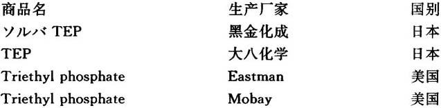 性质 微具气味的无色液体。分子量182。酸度(以磷酸计)<0.02%。相对密度1.065~1.072(20℃)。粘度1.552mPa·s(20℃)。凝固点-56℃。沸点210~220℃(0.1MPa)。闪点(开杯法)115~116℃。蒸气压1333Pa(73℃)。折光率1.4055(20℃)。可与水以任何比例混溶,在高温下本品在水溶液中缓慢水解。与大多数有机溶剂混溶。极易燃烧。