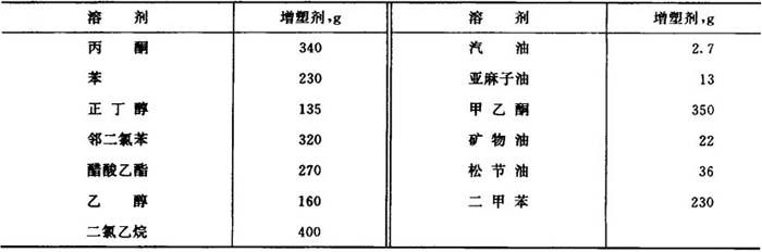 表1-24 磷酸三苯酯在有机溶剂中的溶解度(g/100cm3溶剂)(35℃)