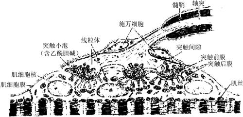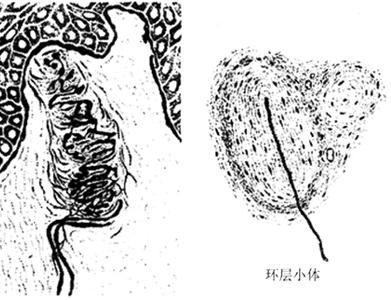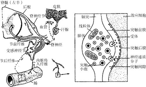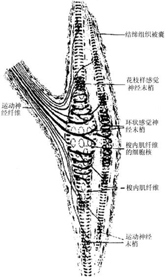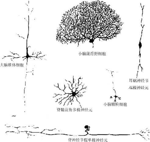 释义 | 神经组织 一、神经元 (一)神经元的结构 和所有的细胞体一样,神经元的胞体由细胞膜、细胞质、细胞器和细胞核等组成。 1.细胞膜 神经元的胞体由质膜包裹而成。质膜的结构符合“脂质双层液态镶嵌模型”,即其基本的构成是双脂层。双层磷脂的外层是亲水性的基团,向细胞外的头部基团大都含有胆碱,而向细胞内的基团大都含有氨基酸。双层磷脂的中间是疏水性基团。脂质的熔点较低,在室温下是液态,并且可以流动。组成脂质的一般是磷脂。每个磷脂分子由磷酸和碱基组成亲水性基团。两条长的脂肪烃链处在双层质膜的中间,两两相对。按照热力学公式的计算,这样的脂质双层处于最稳定的状态。神经膜的构成使得水分子容易通过,而各种离子如K+、Na+等就不能自由地通过。 在脂质双层中镶嵌有蛋白质。这些蛋白质在膜中的位置有3种情况:一种是贯穿于膜内外两侧的蛋白质;另一种是蛋白质的一半露在膜的外面,而另一半则埋在膜中;还有一种是蛋白质全部埋在膜中。镶嵌在细胞膜中不同位置的蛋白质具有各种不同的生理功能,它们构成了离子通道、载体、受体和各种酶。 由于质膜是液态的,所以镶嵌在其中的蛋白质也具有流动性。好像是漂浮在海面上的冰山。在一些实验中,对膜上的蛋白质做荧光标记,然后在显微镜下观察,发现这些标记物不断地移动。蛋白质的这种流动性不是无序的、随机的,而是受到一定的生理性的调控。例如,神经肌肉接头处的乙酸胆碱受体通常聚集在肌膜终板处,但是当切断支配该肌肉的神经后,乙酷胆碱受体就会漂浮在整个肌肉的表面。细胞膜上所含的糖类有寡糖和多糖。这些糖类和质膜的脂类或蛋白质相结合形成糖脂或糖蛋白。这些糖可能具有的一种功能是表示某种免疫信息和作为膜受体的可识别部分。 总之,神经元的细胞膜和其他细胞一样,即以脂质双层作为膜的基本骨架,而镶嵌在其中的蛋白质和连结在其外表面的糖类分子一起完成许多重要的生理功能(图4-1)。 图4-1 脂质双层液态镶嵌模型 2.细胞质 细胞质内含有许多细胞器,包括线粒体、高尔基体、溶酶体等,但较为特殊的是尼氏体(Nissel’s body)和神经原纤维(neurofibril)。尼氏体只存在于胞体和树突中,而在轴突和轴丘中没有观察到。尼氏体由糙面内质网和核糖核蛋白体所组成,是神经元内合成蛋白质的主要部位。神经原纤维为成束排列的细束,由直径不等的神经微管和微丝组成:有的在胞体中交织成网,有的在轴突中和树突中彼此平行,密集成束。神经原纤维的功能可能是起细胞骨架的作用和协助轴浆运输物质。 3.细胞核 细胞核一般位于神经细胞的中央。每个神经细胞有一个核,核内含有由DNA和有关蛋白质组成的遗传物质。细胞核的大小与神经元的大小有关。细胞核核膜的组成和质膜的组成基本是一样的。在核膜上有许多孔洞,称为核孔。一方面,在细胞核内转录成的mRNA、rRNA等要离开核,转移到胞质;另一方面,合成这些物质的原材料来自胞质。所以核孔内有双路运输的穿梭。核内也有一些受体,协助类固醇类激素起生理作用。核内的DNA有两种作用:一是可复制自身,进行细胞分裂;另一个作用是作为模板,制造神经元所需要的各种不同的功能蛋白质。 (二)神经元的突起 神经元的突起分为两种类型:一种是树突(dendrite),另一种是轴突(axon)。 1.树突 树突是胞体向外生长的树状突起,其内容物和胞体大致相同。树突的基部较宽,向外生长时反复分支和不断变细,一般较短。在树突的小分支上有大量的细刺状突起,称为“棘”,是和其他神经元具有机能性连接的部位。一个神经元的胞体可发出许多根树突。树突接受其他神经元来的信息,在胞体综合后,从轴突传向下一级神经元。信息也可以在树突这一层次进行传递,即由树突接受信息,然后从树突传出,而不必从轴突或胞体传出。作为接受信息的树突终末,在许多感觉器官中会和特化的结构相结合,组成感受器。 2.轴突 神经元的胞体只发出一根轴突,胞体发出轴突的部位称为轴丘。轴丘是动作电位产生的部位。刚从胞体发出的轴突无髓鞘包裹,随后整个轴突都由髓鞘所包裹。在中枢神经系统中,髓鞘是由无突胶质细胞形成。在周围神经系统中,髓鞘是由雪旺氏细胞(Schwann cell)形成。轴突的粗细在全长是均匀一致的。在轴突的主干上,常可向直角方向发出侧支。轴突内的胞浆称为轴浆,它与胞体的神经浆相连,存在着双向流动,称为轴浆流,起着物质运输的作用。由于轴突中不存在尼氏体,所以不能合成蛋白质。新的蛋白质由胞体合成,再向轴突方向运输。而轴突的代谢产物,则由轴突向胞体方向运送。 轴突的末端脱去髓鞘后反复分支。每一个分支的末端膨大,称为突触前终末。这是神经元之间传递信息的装置。突触前终末和另一个细胞的树突或胞体等相接触的部位,称为突触。发出信息的神经元称为突触前细胞,而接受信息的神经元称为突触后细胞。 (三)神经元的分类 1.根据形态分类 神经元胞体的形状和突起的长短、数量是多种多样的。一般根据神经元突起的数目将神经元分为单极神经元、双极神经元和多极神经元3种。单极神经元或称假单极神经元,从胞体只伸出一根突起,突起离开胞体后不久再分为轴突(中枢突)和树突(周围突)。例如,脊神经节中的细胞均属此类。树突接受外界的刺激信号,向胞体传送信息,