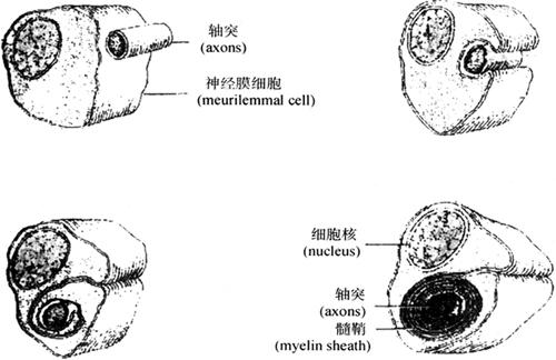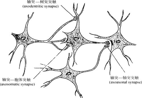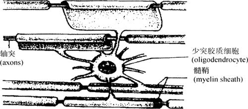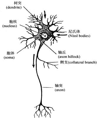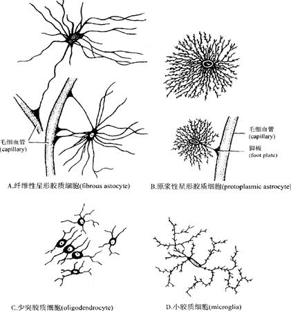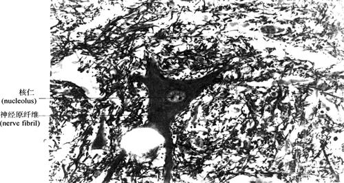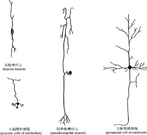 释义 | 神经组织 神经组织(nerve tissue)构成神经系统,分为中枢神经系统和周围神经系统。神经组织由神经细胞(nerve cell)和神经胶质细胞(neuroglial cell)组成。神经细胞又称神经元(neuron),人的神经系统含有上百亿个神经元,是神经系统的基本结构和功能单位,有感受刺激和传导兴奋的功能。神经元的胞体主要分布在中枢神经系统,如大脑皮质、小脑皮质、脊髓的灰质以及周围神经系统的神经节等;神经元的突起则组成中枢神经系统的神经通路和神经网络以及遍布全身的神经。神经胶质细胞(neuroglial cell)广泛分布于中枢和周围神经系统内的神经元胞体之间和突起之间,起支持、营养和保护神经元的作用。 (一)神经元 1.神经元的形态与结构 神经元形态多样。由胞体(soma)和突起(neurite)两部分组成(图2-44)。神经元的细胞膜与普通细胞膜一样由镶嵌有蛋白质的脂质双分子组成。膜内有通道、载体和受体蛋白等,在神经元感受刺激和传导兴奋中起到重要作用。膜表面有糖链组成糖蛋白和糖脂,与细胞识别和连接有关。同时膜内外也与其他细胞一样维持有一定的电位差(膜电位),即膜外带正电荷,膜内带负电荷,呈极化(polarization)状态。当神经细胞膜受刺激时,膜电位发生改变后又很快复原,此过程称为动作电位(action potential),可沿细胞膜扩布,即形成神经冲动的传导。 图2-44 多极神经元模式图 (1)胞体:神经元胞体是细胞的营养中心,细胞核位于胞体中央,大而圆,染色浅,核仁明显。胞质称核周质(perikaryon),含有发达的粗面内质网、游离核糖体、高尔基复合体和微丝、微管、神经丝等。在光镜下,粗面内质网和游离核糖体呈嗜碱性颗粒或块状,称为尼氏体(Nissl bodies)(图2-45),主要功能是合成蛋白质(包括合成神经递质有关的蛋白质和酶)。直径约为10nm的神经丝(neurofilament)常集合成束,在胞体内交织成网,伸入突起内则平行排列,在银染切片中呈棕黑色细丝,称为神经原纤维(图2-46),对神经元起支持、传递信息和运输等作用。某些神经元胞体含有分泌颗粒,内含激素,具有内分泌功能,称为分泌神经元(secretory neuron)。 图2-45 脊髓前角运动神经元(400×) 图2-46 脊髓前角运动神经元镀银染色(示神经原纤维)(400×) (2)突起:神经元的突起包括树突和轴突两种:①树突(dendrites):主要接受来自其他神经元或环境的刺激。神经元有一个或多个树突,自胞体发出后反复分支,并有大量棘状小突,称为树突棘(dendritic spine),能增大树突表面积以接受更多刺激。树突内的胞质与核周质相似,也含有尼氏体(Nissl bodies)等;②轴突(axons):细而长,表面光滑,每个神经元只有一个轴突,胞体在发出轴突处呈圆锥形,称轴丘(axon hillock),轴丘和轴突内无尼氏体。轴突的胞质称轴质(axoplasm),含大量蛋白质,占轴质80%,是由胞体内合成后输送到轴突及其终末。此外还含有微管、微丝和神经丝等,纵行于轴突内,它们之间连接形成网架结构。轴突内物质是流动的,称轴浆流(axoplasmic flow)。胞体内合成物质自胞体移向轴突终末,称轴突运输(axonal transport)。按其运输速度分为慢速运输(slow transport),例如网架结构以每天0.1~0.2mm速度向终末单向性顺行的运输;快速运输(fast transport)是以每天100~400mm的速度呈双向性运输,如膜性细胞器、蛋白质和含神经递质的小泡等结构。轴突的末端分支较多,称轴突终末,它与其他神经元或其他组织广泛联系,轴突是传递兴奋的重要结构,将神经冲动传出胞体到另一神经元或其他组织。 2.神经元的分类 (1)按神经元突起的数目可分为:①多极神经元(multipolar neuron):有多个树突,一个轴突,如脊髓前角内的运动神经元、大脑锥体细胞等;②双极神经元(bipolar neuron):有两个突起,一为树突,一为轴突。如耳蜗神经节的双极神经元;③假单极神经元(pseudounipolar neuron):由胞体发出一个突起,在离胞体一定距离分为轴突(中枢突,central process)和树突(周围突,peripheral process),如脊神经节内感觉神经元(图2-47)。 图2-47 神经元分类示意图 (2)按神经元功能可分为:①感觉神经元(sensory neuron)(传入神经元,afferent neuron):主要与感受器相连,将刺激传向中枢;②运动神经元(motor neuron)(传出神经元,efferent neuron):将神经冲动传到效应器官;③联合神经元(中间神经元,interneuron):位于前两者之间,起联络作用,多位于中枢,亦为多极神经元。 (二)神经胶质细胞 神经胶质细胞(neuroglial cell)简称胶质细胞(glial cell),数量约为神经元的10倍,但因其比神经元小,在常规染色标本中只见到细胞核,以金属浸镀技术(metallic impregnation technique)可观察到胶质细胞整体形态。胶质细胞也有突起,但胞体内无Nissl bodies,胞突无树突轴突之分,无传导神经冲动的功能。其主要作用是对神经元有支持、营养、修复、分隔绝缘及形成髓鞘等功能,对神经系统发育和正常生理活动有重要作用。神经胶质细胞可分中枢神经系统胶质细胞(图2-48)和周围神经系统胶质细胞两类。 图2-48 中枢神经系统神经胶质细胞示意图 1.中枢神经系统胶质细胞 (1)星形胶质细胞(astrocyte):是体积最大的胶质细胞,核圆形或卵圆形,较大,染色淡。突起末端常膨大形成脚板(foot plate),贴附在邻近的毛细血管壁上或参与构成脑、脊髓软膜下的胶质界膜(glia limitans)。可分纤维性星形胶质细胞(fibrous astrocyte)和原浆性星形胶质细胞(protoplasmic astrocyte)两种。前者主要见于白质,突起细长,胞质内含大量胶质丝(glial filament),由胶质原纤维