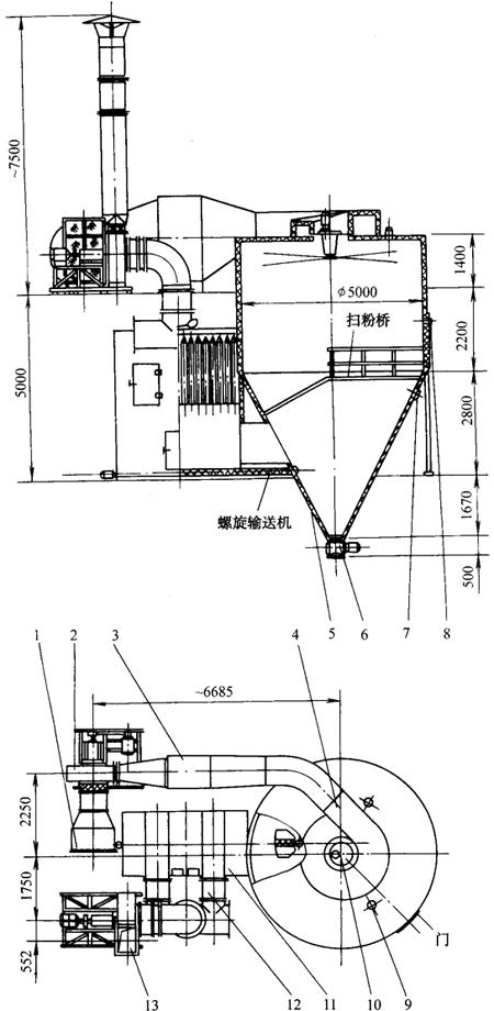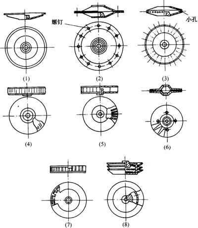 释义 | 离心喷雾干燥装置 (一)特点及用途 料液经旋转的离心转盘而雾化为微粒。生产能力可通过调节管路上的阀门控制进料量来实现,制品颗粒较粗,且分布范围广;制品密度较小,可容易地在较大范围内进行调节;制品颗粒含空气较多,因此对含易氧化成分的物料应采用直空充氮或二氧化碳方式包装,所干燥的物料浓度可达到50%(干物质)以上。不易堵塞,清洗简易方便;生产中噪音和振动较大,因此要求较高的加工精密度和动、静平衡调整。只能采用立式喷雾干燥塔。 (二)工作原理与结构 整套离心喷雾干燥装置由空气过滤器、进风机、空气加热器、离心喷雾器、干燥室、颗粒捕集器、排风机等组成。除雾化设备不同外,其他设备与压力喷雾干燥装置相同,见图4-9-4。 图4-9-4 离心喷雾干燥装置 1-进风口 2-进风机 3-加热器 4-进风管 5-干燥室 6-出料阀门 7-灯孔 8-清扫门 9-灯孔 10-离心喷雾器 11-颗粒捕集器 12-分风箱 13-排风机 经过滤除尘后的空气,通过空气加热器加热,由置于塔顶的热风分配器以一定速度均匀进入干燥塔后,与被离心喷雾器分散成微粒的物料接触,瞬间使微粒干燥为粉粒,并借锥体斜面下落至塔底,经鼓形阀不断卸出。废气通过微粒捕集器回收细粉后,经排风机排至大气。 干燥塔上部为圆柱体,下部为圆锥体。在圆锥体部分安装有数只电磁振荡器定时振动,以促使塔壁上积粉下落,保证粉粒及时卸出。 离心喷雾器中最主要的部件就是离心转盘。优良的转盘设计要求润湿周边长,能使溶液获得动能而产生较大的离心力,且喷雾均匀、结构简单、易拆洗,有较大的生产率。中小型厂多采用喷枪式离心盘。物料喷雾的均匀性、液滴的分散度和颗粒都较好,但若喷孔较小时遇有污垢易造成堵塞。各种形式的离心转盘见图4-9-5。 图4-9-5 各种形式的离心转盘 (1)蝶式 (2)碗式 (3)僧帽式 (4)曲叶板式 (5)辐射叶板式 (6)沟槽式 (7)插板式 (8)多层式 (三)主要技术参数 离心喷雾干燥器主要技术参数见表4-9-2。 表4-9-2 离心喷雾干燥器主要技术参数 |