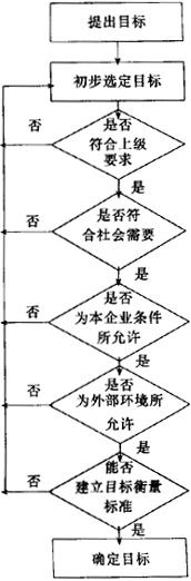 目标既是决策的出发点又是决策的最终结果。目标的确定在决策中占首要地位。确定目标要从需要和可能出发,兼顾主观愿望和客观要求,有时还有必要区别必须达到的目标和期望达到的目标。同时还要建立评价标准作为以后方案选择时的衡量尺度。确定目标的过程如图2·2·2-1所示。