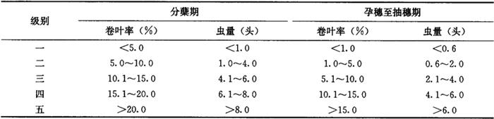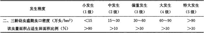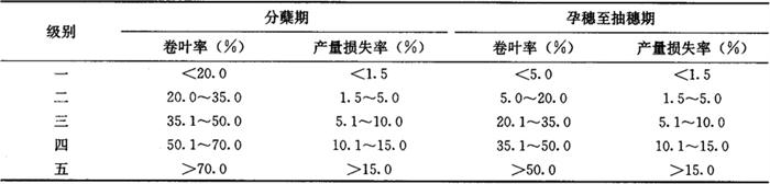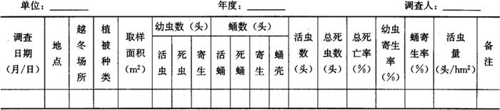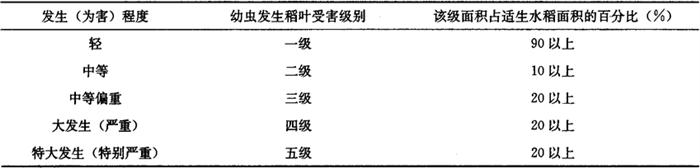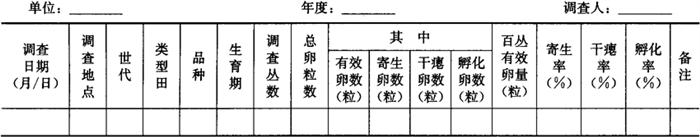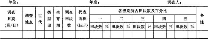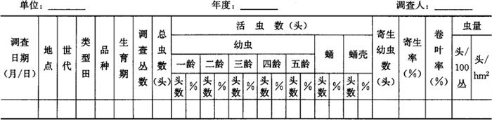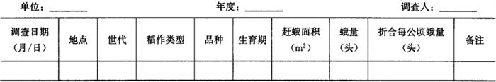 释义 | 稻纵卷叶螟测报调查方法 稻纵卷叶螟(Cnaphalocrocis medinalis Guenee)属鳞翅目螟蛾科,是为害水稻的一种迁飞性害虫。分布在东亚、东南亚及澳洲等地。我国除新疆、宁夏分布情况不明外,其他稻区均有分布。稻纵卷叶螟成虫昼伏夜出,有趋光、趋绿和群集特性。卵散产于叶片上,通常以叶背为多。初孵幼虫爬到叶尖卷叶取食,稍大幼虫则钻入叶心、叶鞘内或叶面上咬食叶肉,并吐丝将叶的两边纵卷结苞。结好苞后就在苞内顺叶脉食叶肉及上表皮,被害叶呈现长短不一的条状叶斑。幼虫老熟后,在植株下部及叶鞘部重新结苞化蛹。1头幼虫一生可食害5~9片叶,被害严重田块呈现一片枯白。水稻分蘖期受害,影响其正常生长;中后期受害,影响产量更明显,特别是后期剑叶受害,造成秕谷率增加,损失严重。 1 预测依据 稻纵卷叶螟的预测要根据成虫迁入量(前代蛾量)、气候因子、品种及生育期、天敌等因素综合分析,预报虫害发生发展趋势。 1.1 气候条件 成虫盛发期遇气温22~28℃、高湿、多雨日、雨量大,是大发生的预兆。尤以8月下旬至9月初水稻生长中后期稻纵卷叶螟具有较大的为害性,应重点进行防治。 1.2 迁入数量 迁入蛾群的降落,多数伴随降雨过程。因此,迁入期的雨日、雨量常对迁入数量及当代发生轻重有着重要影响。 1.3 品种及生育期 稻纵卷叶螟产卵有较明显的趋嫩绿习性。水稻孕穗期产卵多,易受害;乳熟期受害轻。软质、矮秆、阔叶品种、杂交水稻及氮肥用量大的田块易受害重,反之则轻。 2 调查内容与方法 2.1 越冬调查(以本地越冬虫源为翌春主要虫源的地区进行) 在冬后成虫羽化前调查1~2次。选稻田、绿肥田及田边、沟边等主要越冬场所,共取样20m2以上,调查稻桩、再生稻、落谷稻、冬稻及杂草上的幼虫和蛹的越冬情况。统计死、活幼虫和蛹数及被寄生数。调查结果记入表4-44。 表4-44 稻纵卷叶螟越冬调查表 2.2 成虫及雌蛾卵巢发育进度调查 2.2.1 田间赶蛾 调查于主害代及其上一代常年始蛾期前一周开始,至当代蛾盛期结束为止。隔天上午9时以前进行1次。选择具代表性的三种类型田各1块,合计3块。手持长2m的竹竿沿田埂逆风缓慢拨动稻丛中、上部,用计数器计数飞起的蛾数。每块田调查面积为50~100m2以上。调查结果记入表4-45。 表4-45 稻纵卷叶螟田间赶蛾调查记载表 2.2.2 雌蛾卵巢解剖 在主害代及其上一代蛾的主要峰期,结合田间赶蛾进行,剖查2~3次。迁出代成虫迁出时期内,如遇多阴雨天气时,再剖查1~2次。在赶蛾的各类型田块中用捕虫网采集雌蛾20~30头,带回室内当即解剖,镜检卵巢级别和交配率。结果记入表4-46。 表4-46 稻纵卷叶螟赶蛾剖蛾记载表 2.3 幼虫发育进度及残留虫量调查 在各主害代及其上一代大田防治结束后,四龄幼虫盛期进行1次。选择具有代表性的三种类型田各1~2块,采用双行平行跳跃式取样,每块田查50~100丛,剥检所有卷叶虫苞,记录各虫态数量和被寄生虫数,计算各虫态百分率、虫口密度、卷叶率、寄生率。结果记入表4-47。 表4-47 稻纵卷叶螟幼虫发育进度及残留虫量调查表 2.4 大田普查 2.4.1 卵量调查 各主害代发蛾高峰期调查1~2次。选择具代表性的类型田各1~2块,采用双行平行跳跃式取样,每块田查10丛,目测所有叶片有效卵、寄生卵、干瘪卵数。调查结果记入表4-48。 表4-48 稻纵卷叶螟田间卵量调查表 2.4.2 幼虫发生程度调查 各主害代施药防治前二至三龄幼虫盛期,田间普遍发生卷叶时进行。选择具有代表性的乡(镇)、村进行抽样。各类型田的调查块数应按比例确定。调查采用大田巡视目测法。目测稻株顶部3片叶的卷叶率,对照4.1,确定幼虫发生级别。记录各级别所占田块数及比例。结果记入表4-49。 表4-49 稻纵卷叶螟发生情况普查记载表 2.4.3 稻叶受害率(程度)普查 各主害代防治结束,为害基本定局后进行。抽样同2.4.2。目测稻株顶部3片的卷叶率,并对照4.2,确定稻叶受害程度,记录各级别所占田块数及比例,并将结果记入表4-50。 表4-50 稻纵卷叶螟为害情况普查记载表 3 预测方法 3.1 发生期预测 3.1.1 世代划分法 稻纵卷叶螟遍布全国稻区,各地发生代数自北至南发生1~11代。为便于异地预报,以成虫为起点统一制定了全国代别发生标准。同时,为了便于省间交流和考虑各省习惯,世代划分采用“双轨制”,即标明世代,可以用中文数字标出全国统一世代,后面括弧内以阿拉伯数字标出地方代。划分标准见4.5。 3.1.2 历期法预测 由田间赶蛾查得发蛾高峰日,加上当时的产卵前期(外来虫源为主世代或峰次不加产卵前期)、卵期和一龄幼虫历期,预报二龄幼虫期。 3.2 发生量预测 3.2.1 发生趋势预测 根据虫源地的残留量及发育进度,结合本地雨季和高空大气流场的天气预报,分析迁入虫源多少。如虫源地防治后残虫量多,羽化盛期当地气候对迁入有利,则迁入量可能偏多。 在本地虫源为主时,可根据残留量多少,分析下一代发生趋势。 根据当地历史资料,以蛾、卵、幼虫间的相关性,建立预测式。 3.2.2 根据蛾量预测 根据田间蛾量,结合雨季的长短、雨日、雾露、温度、湿度情况,结合水稻生育期和长势等,进行综合分析预测。 3.2.3 根据卵量做短期预测 根据卵量,考虑气候、天敌等影响因子,运用稻纵卷叶螟生命表研究成果,进行分析,做出预报。 4 测报参考资料 4.1 稻纵卷叶螟幼虫发生级别的分类 4.2 稻叶受害程度级别的分类 4.3 发生(为
