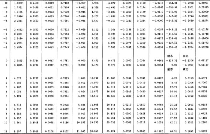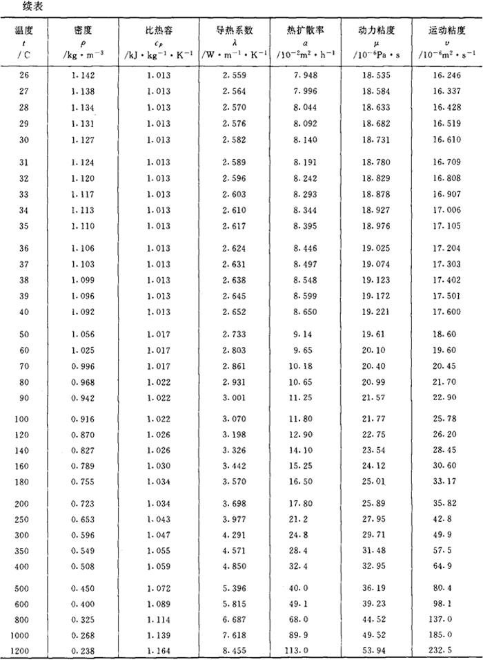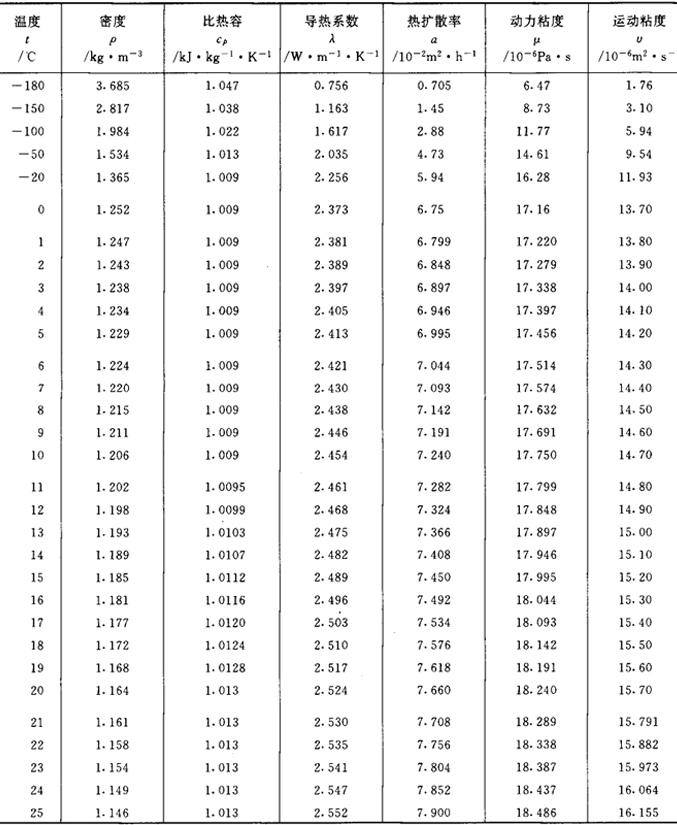 注:表中数值实际是干空气压力为98.0665kPa时之值。