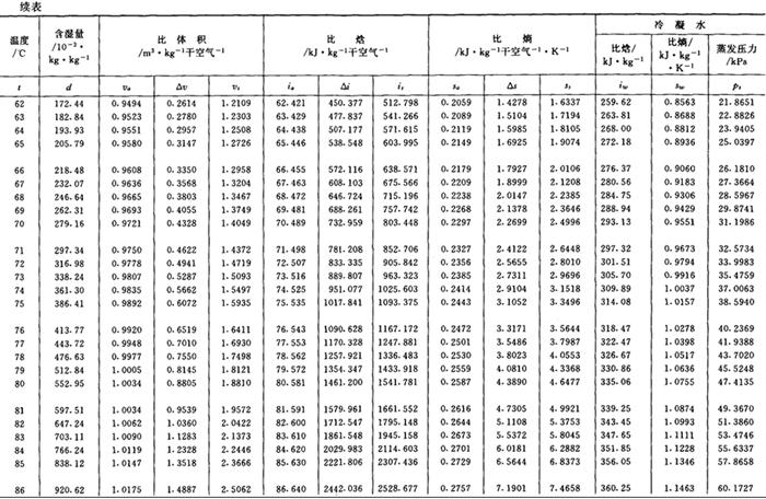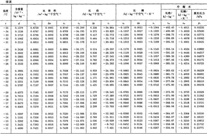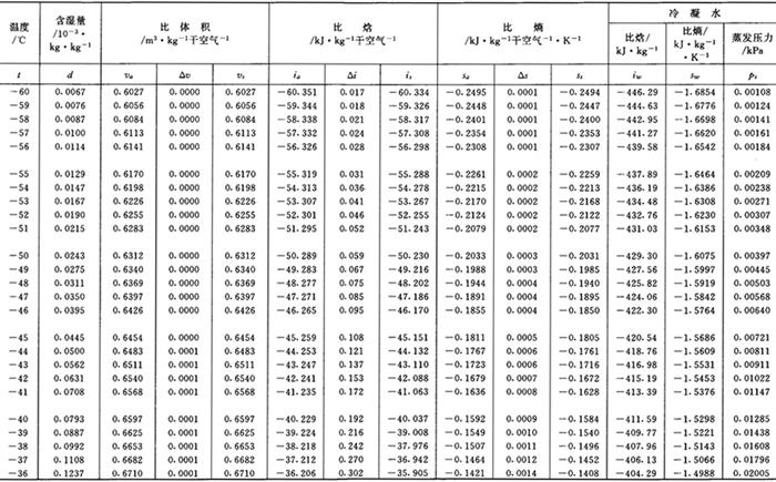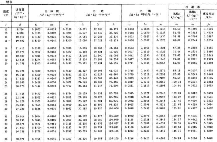 注:1.表中数值实际是湿空气在压力为101325Pa时之值。