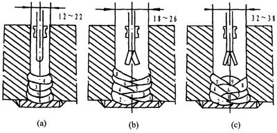 释义 | 窄间隙埋弧焊 窄间隙焊接是指利用窄间隙代替V形、双V形、U形或双U形等坡口进行焊接的一种方法。根据焊接方法的不同,有窄间隙埋弧焊(SAW-NG)、窄问隙熔化极气体保护焊(GMAW-NG)、窄间隙钨极气体保护焊(GTAW-NG)等多种形式。窄间隙自动埋弧焊(SAW-NG)坡口角度一般为0°~1°,坡口宽度为20~30mm,通常选用直径为3mm左右的焊丝。 1.SAW-NG的特点 (1)由于采用窄间隙,焊接厚板接头时无需采用U形或双U形坡口,因而大大节省了填充金属。 (2)在窄而深的坡口中进行多层焊,热输入较低,因而减小了残余应力及工件变形,同时可防止热裂纹。 (3)由于采用了多层焊,后续焊道对前一焊道具有很好的回火作用,加之每层的厚度较薄,因此,焊缝金属晶粒细小,韧性好。 (4)与窄间隙气体保护焊相比,窄间隙埋弧焊的焊丝较粗,电弧较大,对跟踪控制系统的精度要求较低,因此不易产生未焊透及夹渣等缺陷。 2.SAW-NG的技术要点 (1)每层焊道侧壁均要求完全焊透,因此焊丝端部与侧壁之间应保持适当的距离,并且焊丝伸出长度也应适当。这就要求焊机配有横向及高度方向的跟踪系统,以保证焊丝的精确定位。 钢板厚度方向(Z轴)及间隙宽度方向(Y轴)均应装有传感器,通常采用接触式机械-电气系统传感器。Z向传感器的作用是:控制并保持焊丝的伸出长度,稳定焊接参数;控制导电嘴从坡口一侧摆向另一侧所用的时间;反馈控制滚轮架的转动速度,使焊接速度始终保持稳定。 Y向传感器的作用是控制导电嘴与侧壁的距离,并使之保持不变,以保证侧壁焊透并避免咬边和夹渣。 (2)由于SAW-NG是在很窄的间隙中进行多层焊,因此脱渣是一个重要问题,一般要求焊剂须有良好的脱渣性。表1-3-37比较了几种窄间隙埋弧焊焊剂的脱渣性。 表1-3-37 几种窄间隙埋弧焊焊剂的脱渣性[11] (3)焊接过程中,如发现缺陷,应及时利用合适的方法磨掉,并进行修补。 3.SAW-NG工艺 一般开0°~1°的坡口。坡口的关键尺寸是坡口宽度,通常根据焊件的厚度、焊丝直径、焊剂的脱渣难易程度、以及焊件的结晶裂纹敏感性来选择。焊件厚度越大,或焊丝直径越大,或脱渣越难,或结晶裂纹敏感性越大,则坡口宽度应适当增大。而且要求坡口宽度具有较高的精度。在焊缝全长范围内,坡口宽度的误差应不超过3mm,否则将很难保证焊缝质量。 窄间隙埋弧焊工艺有3种方案,如图1-3-23所示。图(a)为每层一道焊缝,适用于板厚为70~150mm的工件。该方案有省时省料的特点。但必须严格控制坡口精度和焊接工艺参数。由于单道焊根部容易产生热裂纹,因此当焊接含碳量较高的钢材时,应该采用较低的焊接电流和速度,从而获得较大的成形系数,减小裂纹倾向。 图(b)为每层两道焊缝,适用于板厚为150~300mm的工件,该方案的特点是,易焊透,焊渣易清除,工艺参数允许范围大。而且由于线能量小,焊缝具有良好的韧性。 图(c)为每层三道焊缝,适用于板厚>300mm的工件。 图1-3-23 窄间隙埋弧焊工艺方案[11] 焊丝直径通常根据板厚来选择,板厚小,选择的焊丝直径也应较小。电弧电压一般取25V~35V,若小于25V,焊缝上凸严重;若大于35V,易产生咬边及夹渣,且清渣困难。 焊丝与间隙侧壁(丝-壁)的间距是影响焊缝质量和性能的一项重要参数,决定了侧壁熔深、粗晶区与细晶区比例。通常,最佳的丝-壁间距等于所用焊丝的直径,允许偏差为±0.5mm。 窄间隙自动埋弧焊工艺参数如表1-3-38所示。 表1-3-38 窄间隙自动埋弧焊工艺参数[11] 4.窄间隙埋弧焊机 哈尔滨焊接研究所研制的窄间隙埋弧焊机HSS-250W在预留间隙的情况下,可焊厚度达350mm的板材。焊机有单、双丝两种型式,采用微机控制,可实现焊接电流、电压及焊接速度的闭环控制。焊机还可配用两维焊缝跟踪装置及其他控制功能,具有较高的自动化程度。 |