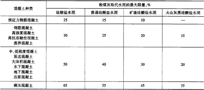 释义 | 粉煤灰混凝土 1.粉煤灰的质量指标 1)用于混凝土中的粉煤灰质量的指标划分为三个等级。其质量指标应符合表2-30的规定。 表2-30 粉煤灰质量指标的分级% 2)干排法获得的粉煤灰,其含水量不宜大于1%;湿排法获得的粉煤灰,其质量应均匀。 3)主要用于改善混凝土和易性所采用的粉煤灰,可不受《粉煤灰混凝土应用技术规范》(GBJ 146)的限制。 2.粉煤灰混凝土的工程应用 1)粉煤灰用于混凝土工程可根据等级,按下列规定应用: ①Ⅰ级粉煤灰适用于钢筋混凝土和跨度小于6m的预应力钢筋混凝土。 ②Ⅱ级粉煤灰适用于钢筋混凝土和无筋混凝土。 ③Ⅲ级粉煤灰主要用于无筋混凝土。对设计强度等级C30及以上的无筋粉煤灰混凝土,宜采用Ⅰ、Ⅱ级粉煤灰。 ④用于预应力钢筋混凝土、钢筋混凝土及设计强度等级C30及以上的无筋混凝土的粉煤灰等级,如经试验论证,可采用比上述“①”、“②”、“③”规定低一级的粉煤灰。 2)粉煤灰用于跨度小于6m的预应力钢筋混凝土时,放松预应力前,粉煤灰混凝土的强度必须达到设计规定的强度等级,且不得小于20MPa。 3)配制泵送混凝土、大体积混凝土、抗渗结构混凝土、抗硫酸盐和抗软水侵蚀混凝土、蒸养混凝土、轻骨料混凝土、地下工程混凝土、水下工程混凝土、压浆混凝土及碾压混凝土等,宜掺用粉煤灰。 4)根据各类工程和各种施工条件的不同要求,粉煤灰可与各类外加剂同时使用。外加剂的适应性及合理掺量应由试验确定。 5)粉煤灰用于下列混凝土时,应采取相应措施: ①粉煤灰用于要求高抗冻融性的混凝土时,必须掺入引气剂; ②粉煤灰混凝土在低温条件下施工时,宜掺入对粉煤灰混凝土无害的早强剂或防冻剂,并应采取适当的保温措施; ③用于早期脱模、提前负荷的粉煤灰混凝土,宜掺用高效减水剂、早强剂等外加剂。 3.粉煤灰混凝土配合比设计和粉煤灰取代水泥的最大限量 (1)粉煤灰混凝土配合比设计 1)粉煤灰混凝土的设计强度等级、强度保证率、标准差及离差系数等指标,应与基准混凝土相同,其取值应按有关标准规范执行。 2)粉煤灰混凝土设计强度等级的龄期,地上工程宜为28d;地面工程宜为28d或60d;地下工程宜为60d或90d;大体积混凝土工程宜为90d或180d。在满足设计要求的条件下,以上各种工程采用的粉煤灰混凝土,其强度等级龄期也可采用相应的较长龄期。 3)混凝土中掺用粉煤灰可采用等量取代法、超量取代法和外加法。粉煤灰混凝土配合比设计,应按绝对体积法计算。 4)当粉煤灰混凝土配合比设计采用超量取代法时,超量系数可按表2-31选用;当混凝土超强较大或配制大体积混凝土时,可采用等量取代法;当主要为改善混凝土的和易性时,可采用外加法。 5)粉煤灰的含水率大于1%时,应从粉煤灰混凝土配合比用水量中扣除。粉煤灰混凝土中掺入引气剂时,其增加的空气体积应在配合比设计的混凝土体积中扣除。 表2-31 粉煤灰的超量系数 (2)粉煤灰取代水泥的最大限量 1)粉煤灰在各种混凝土中取代水泥的最大限量(以重量计算)应符合表2-32的规定。 表2-32 粉煤灰取代水泥的最大限量 2)当钢筋混凝土中钢筋保护层厚度小于5cm时,粉煤灰取代水泥的最大限量,应比表2-32的规定相应减少5%。 4.粉煤灰混凝土的施工 1)粉煤灰掺入混凝土中的方式,可采用干掺或湿掺。其掺入方法应符合下列要求: ①干掺时,干粉煤灰单独计量,与水泥、砂、石、水等材料按规定次序加入搅拌机进行搅拌; ②湿掺时,先将粉煤灰配制成粉煤灰与水及外加剂的悬浮浆液,与砂、石等材料按规定次序加入搅拌机进行搅拌。 2)使用干态或湿态粉煤灰应以重量计量,称量误差不得超过±2%。粉煤灰中的含水量,应在拌合水中扣除。 3)粉煤灰混凝土拌合物必须搅拌均匀,其搅拌时间应比基准混凝土延长10~30s。 4)粉煤灰混凝土浇筑时,不得漏振或过振。振捣后的粉煤灰混凝土表面,不得出现明显的粉煤灰浮浆层。 5)粉煤灰混凝土振捣完毕后,应加强养护,混凝土表面宜加遮盖,并保持湿润。暴露的潮湿养护时间,不得少于14d;干燥或炎热气候条件下的潮湿养护时间,不得少于21d。 6)粉煤灰混凝土在低温条件下施工时应加强表面保温,粉煤灰混凝土表面的最低温度不得低于5℃。寒潮冲击情况下,日降温幅度大于8℃时,应加强粉煤灰混凝土表面的保护,防止产生裂缝。 7)蒸养粉煤灰混凝土,应符合下列要求: ①成型后热预养温度不宜高于45℃;预养(静停)时间不得少于1h;常温预养时,其预养时间应适当延长。 ②蒸养时的升温速度宜为15~20℃/h;恒温温度宜为85~90℃;降温速度宜为35~45℃/h。 ③蒸养粉煤灰混凝土的养护周期,宜为8~10h。 5.粉煤灰混凝土的检验 1)粉煤灰混凝土的质量,应以坍落度或工作度、抗压强度进行检验。引气剂的粉煤灰混凝土,应增测含气量。有特殊要求时,还应增测其他相应的检验项目。 2)现场施工粉煤灰混凝土的坍落度或工作度的检验,每班至少应测定两次,其测定值允许偏差应为±2cm。 3)粉煤灰混凝土抗压强度的检验,应符合下列规定: ①非大体积粉煤灰混凝土每拌制100m3,至少成型一组试块;大体积粉煤灰混凝土每拌制500m3,至少成型一组试块;不足上列规定数量时,每班至少成型一组试块。 ②用边长15cm的立方体试块,在标准养护条件下所得的抗压强度极限值作为标准。 ③每组3个试块试验结果的平均值,作为该组试块强度代表值。当3个试块的最