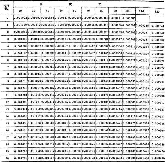 表2-1-29 海水、卤水粘度 Pa·s(帕·秒)(今津崇、中山秀夫)