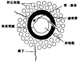 释义 | 精卵相遇及受精 获能 顶体反应 透明带结合 从男性生殖道射入女性生殖道内的精子在受精前需要运行一段距离和穿过许多屏障。精子刚进入女性生殖道时没有受精能力。但是,精子在女性生殖道完成了“获能”这一成熟过程。获能时,精子膜及精子代谢发生变化,但其全部过程尚不清楚。精子获能以后,运动形式改变,呈现高度活跃状态,并且具备发生顶体反应的能力。 顶体反应 顶体反应是一种钙离子激活的精子头部细胞膜发生变化的细胞排粒作用。精子顶体外膜及其相贴的精子质膜发生众多的点状融合,形成许多小泡,顶体液体内容物释放,顶体内膜暴露。暴露的顶体内膜和精子头部后体质膜,形成精子发生顶体反应后的质膜(图11-1)。在质膜融合中,膜蛋白发生不完全混合。顶体富含透明质酸酶、蛋白酶、顶体素,这些物质在精子穿过卵子外膜过程中发挥作用。顶体反应形成的小泡表面也含有透明质酸酶、蛋白酶和顶体素。暴露的顶体内膜含有的分子物质在为精子穿过卵子外膜开劈一条通道过程中起消化作用或在精子与透明带结合过程中发挥作用。 图11-1 顶体反应前后的几内亚猪精子头部 注:在顶体反应过程中,精子头部前体细胞膜(除了赤道板后方的大部分膜)和顶体外膜融合后丢失。顶体反应发生的精子通过顶体内膜结合。赤道板区的细胞膜和精子头部后体细胞膜与卵子细胞膜融合。顶体内膜不参与细胞膜融合,但是进入卵子胞质 精子发生顶体反应的场所和信号尚未完全清楚。精子与透明带结合诱发顶体反应发生。但是,精子通过女性生殖道时接触的物质促使顶体反应发生或者是诱发顶体反应发生。这些物质包括输卵管液和卵泡液(如卵泡液中含有的孕酮)以及卵丘细胞基质成分。在与卵子相遇过程中,精子逐步发生顶体反应。 卵丘穿透过程 在精子与卵子(确切地说是卵母细胞,因为此时并没有完全完成减数分裂)相遇过程中,精子首先与卵丘相遇。卵丘细胞是围绕在卵子周围的卵泡细胞,排卵时与卵子一同排出。精子在卵丘细胞间摆动并借助顶体和质膜的丰富透明质酸酶分解卵丘细胞基质穿过卵丘到达卵子。不管精子在卵丘是否发生顶体反应,但是透明质酸酶在精子穿过卵丘过程中起作用是肯定的。 透明带 精子与透明带相遇后,精子识别透明带并与之结合。精子与透明带结合没有严格的种族特异性,但是同种族之间优先结合。 小鼠透明带由ZP1、ZP2、ZP33种糖蛋白组成。许多研究发现,顶体完整的小鼠精子首先与ZP3的糖类区域结合。精子表面与ZP3的糖类区结合的结构特征目前尚未清楚。但已有确凿证据表明:精子表面的半乳糖转移酶与其他的一种基质即位于透明带上的N-乙酰葡萄糖胺结合,这是因为它的另一种基质即尿苷二磷酸半乳糖丢失,此时精子结合于透明带。除半乳糖转移酶外,还有其他物质参与,或者是其他物质取代半乳糖转移酶参与此过程。顶体完整的精子与透明带结合,精子发生顶体反应。实验研究发现,多价透明带蛋白ZP3或精子膜特异性抗体与精子作用后,顶体反应发生。 顶体反应发生的精子也能够结合于透明带。在几内亚,猪的实验研究中发现,顶体反应发生的精子和顶体完整的精子同样都能结合于透明带。这个实验结果与兔和人类的相符合。所以,由此认为精子发生顶体反应后,精子必须结合或再结合于透明带。这样,在精子穿过透明带前,可以防止精子从透明带脱落。此外,已有小鼠实验发现:顶体反应发生后,精子结合于透明带的ZP2。但顶体反应发生后,精子与透明带结合的位点仍在继续研究中。 精子与卵子质膜相遇必须穿过透明带(图11-2)。精子借顶体释放的酶以及精子膜表面酶的消化作用,在透明带开辟几个通道,让自身穿过透明带。此外,精子本身还活动。所以,精子穿过透明带的部分原因是机械力学作用。 图11-2 精子在受精过程穿过卵丘和透明带示意图 精子穿过透明带后,进入透明带与卵膜之间的狭小卵黄周围间隙(图11-2)。然后,精子与卵子质膜结合并发生融合。精子结合于卵子质膜的机制有多个,这是因为异种精子或顶体完整的精子能够结合于卵子质膜但不能发生融合。精子结合于卵子质膜需要精子膜蛋白参与。这种精子膜蛋白称之为受精素(或PH-30),卵子质膜上的整合素是它的粘附点。精子与卵子质膜结合被阻断,融合也被阻断。受精素蛋白参与精子与卵子质膜融合所包含的序列,类似于病毒融合蛋白的融合肽链序列。 精子与卵子融合后,它们的质膜和胞质相互混杂。受精时,卵子接受尚未研究清楚的信号,细胞内游离钙离子浓度增加,卵子被激活,第2次减数分裂完成,第二极体释放,有丝分裂恢复,胚胎开始发育。 【参考文献】: Florman HM,Babcock DF.Progress toward understanding the molecular basis of capacitation.In:Wassarman PM,ed.Elements of Mammalian Fertilization.Boca Raton:CRC Press;1991∶105~203. Kopf GS,Gerton GL.The mammalian sperm acrosome and the acrosome reaction.In:Wassarman PM,ed.Elements of MammalianFertilization.Boca Raton:CRC Press;1991∶153~203. Myles DG.Molecular mechanisms of sperm-egg membrane binding and fusion in mammals.Dev Biol 1993;158∶35~45. Ward C,Kopf G.Molecular events mediating sperm activation.Dev Biol 1993∶158∶9~34. Yanagimachi R.Mammalian Fertilization.In:Knobil E,Neill J,eds.The Physiology of Reproduction.New York:Raven Press,Ltd.;1988∶135~185. |