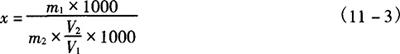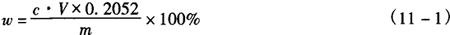 释义 | 糖精钠 结构式: 分子式:C7H4O3NSNa·2H2O 相对分子质量:241.19 一、糖精钠的鉴别 1.试剂 1.1 间苯二酚。 1.2 硫酸。 1.3 氢氧化钠 40g/L溶液。 1.4 盐酸 100g/L溶液。 2.仪器 一般实验室仪器。 3.操作步骤 3.1 取试样约20mg,加间苯二酚约40mg,混合后加硫酸10滴,用微火加热,至显深绿色,放冷,加水10mL与过量的氢氧化钠溶液即成绿色有荧光的溶液。 3.2 取铂丝,用盐酸湿润后,蘸取试样,在无色火焰中燃烧,火焰即显鲜黄色。 3.3 熔点测定 按《中华人民共和国药典》1977年版熔点测定法规定。取试样约0.3g,加水5mL溶解后,加稀盐酸1mL,即析出结晶,过滤,滤渣用水洗净,经105℃干燥后,测定其熔点应为226~230℃。 二、糖精钠的含量测定 1.试剂和溶液 1.1 冰乙酸。 1.2 乙酸酐。 1.3 结晶紫指示液 0.5%乙酸溶液。 1.4 无水乙酸 取冰乙酸适量,按含水量计算1g水加乙酸酐5.22mL即得。 1.5 高氯酸 0.1mol/LHClO4标准溶液,按GB601配制。 2.仪器 一般实验室仪器和自动滴定管(25mL)。 3.测定方法 取干燥失重测定后试样0.3g,称准至0.0002g,加入乙酸酐5mL,溶解后,加2滴结晶紫指示液,用0.1mol/LHClO4溶液滴定至蓝绿色。 4.分析结果的表述 糖精钠质量分数(w),按式(11-1)计算: 式中 c——HClO4标准溶液浓度,mol/L V——消耗高氯酸标准溶液的体积,mL m——试样质量,g 0.2052——每毫摩糖精钠的质量,g/mmol 三、食品中糖精钠的测定方法 (一)高效液相色谱法 1.原理 样品加温除去二氧化碳和乙醇,调节pH至近中性,过滤后进高效液相色谱仪。经反相色谱分离后,根据保留时间和峰面积进行定性定量。取样量为2.5g时,进样量为10μL时,最低检出量为1.5ng。 2.试剂和溶液 2.1 甲醇 经滤膜(0.5μm)过滤。 2.2 氨水(1+1) 氨水加等体积水混合。 2.3 0.02mol/L乙酸铵溶液 称取1.54g乙酸铵,加水至1000mL溶解,经滤膜(0.45μm)过滤。 2.4 糖精钠标准贮备溶液 准确称取0.0851g经120℃烘干4h后的糖精钠(C7H4O3NSNa·2H20),加水溶解定容至100.0mL。糖精钠含量1.0mg/mL,作为储备溶液。 2.5 糖精钠标准使用溶液 吸取糖精钠标准贮备液10.0mL,放入100mL容量瓶中,加水至刻度。经滤膜(0.45μm)过滤。该溶液每毫升相当于0.10mg的糖精钠。 3.仪器 高效液相色谱仪,紫外检测器。 4.测定方法 4.1 样品处理。 4.1.1 汽水、饮料、果汁类:汽水需微温搅拌除去二氧化碳,然后吸取2.0mL样品加入已装有中性氧化铝(3cm×1.5cm)的小柱中,过滤,弃去初滤液。然后用移动相洗脱糖精钠,接收于25mL带塞量筒中,洗脱至刻度,摇匀。此液通过微孔滤膜后进样。 4.1.2 配制酒类:称取10.0g样品,放入小烧杯中,水浴加热除去乙醇,用氨水(1+1)调至pH7,加水定容至适当体积,经滤膜(0.45μm)过滤。 4.2 高效液相色谱参考条件: 4.2.1 色谱柱:YWG-C18 4.6mm×150mm,5μm,或其他型号C18柱。 4.2.2 流动相: 甲醇+乙酸铵溶液(0.02mol/L)(5+95)。 4.2.3 流速:1.0mL/min。 4.2.4进样量:10μL。 4.2.5 检测器:紫外检测器,波长230μm,灵敏度0.2AUFS。根据保留时间定性,外标峰面积法定量。 5.分析结果的表述 式中 x——样品中糖精钠的含量,g/kg(L) m1——进样体积中糖精钠的质量,mg V2——进样体积,mL V1——样品稀释总体积,mL m2——样品质量,g 6.其他 本方法可同时测定山梨酸、苯甲酸、糖精钠(见图11-1)。 图11-1 高效液相苯甲酸、山梨酸、糖精钠色谱图 1-苯甲酸 2-山梨酸 3-糖精钠 (二)薄层色谱法 1.原理 在酸性条件下,食品中的糖精钠用乙醚提取、浓缩、薄层色谱分离,显色后与标准比较,进行定性和半定量测定。 2.试剂和溶液 2.1 乙醚 不含过氧化物。 2.2 无水硫酸钠。 2.3 无水乙醇及乙醇(95%)。 2.4 聚酰胺粉 100~140目。 2.5 盐酸(1+1) 取100mL盐酸,加水稀释至200mL。 2.6 展开剂。 2.6.1 正丁醇+氨水+无水乙醇(20+1+1)。 2.6.2 异丙醇+氨水+无水乙醇(20+1+1)。 2.7 显色剂 称取0.040g溴甲酚紫溶于100mL50%乙醇溶液,用1.2mL0.4%氢氧化钠溶液调至pH8。 3.仪器 3.1 吹风机。 3.2 层析缸。 3.3 玻璃板5cm×20cm。 3.4 微量注射器10μL。 3.5 玻璃喷雾器。 4.测定方法 4.1 样品提取。 4.1.1 饮料、果酱:称取2.5g(mL)已经混匀的样品(汽水需加热去除二氧化碳),置于25mL带塞量筒中,加氯化钠至饱和(约1g),加0.5mL26mol/LHCl溶液酸化,用15mL、10mL乙醚提取2次,每次振摇1min,静止分层,用滴管将上层乙醚提取液通过无水硫酸钠滤入25mL容量瓶中,用少量乙醚洗无水硫酸钠,加乙醚至刻度,混匀。吸取10.0mL乙醚提取液分2次置于10mL带塞离心管中,在约40℃水浴上挥发至干,加入0.1mL无水乙醇溶解残渣,备用。 4.1.2 糕点:称取2.5g糕点样品,研碎,置于25mL带塞量筒中,用石油醚提取3次,每次20mL,每次振摇3min,弃去石油醚,让样品挥干后(在通风橱中不断搅拌样品,以除去石油醚),加入0.5mL6mol/LHCl溶液酸化,再加约1g氯化钠,以下按4.1.1自“用15mL、10mL乙醚提取2次……”起依法操作。 4.2 测定。 4.2.1 聚酰胺粉板的制备:称取4g聚酰胺粉,加1.0g可溶性淀粉,加约14mL水研磨均匀合适为止,立即倒入涂布器内制成面积为5cm×20cm,厚度为0.3mm的薄层板6块。室温干燥后,于80℃干燥1h,取出,置于干燥器中保存、备用。 4.2.2 点样:薄层板下端2cm的基线上,用微量注射器于板中间点4μL样品溶液,两侧各点2μL、3μL糖精钠标准液。 4.2.3 展开与显色:将点样后的薄层板放入预先盛有展开剂(2.6.1或2.6.2)的展开槽中,展开槽周围贴有滤纸,待溶剂前沿上展至10cm以上时,取出在空气中挥干,喷显色剂其斑点成黄色,背景成蓝色。样品中糖精钠的量与标准斑点深浅比较定量(用2.6.2展开剂时,糖精