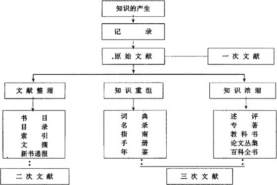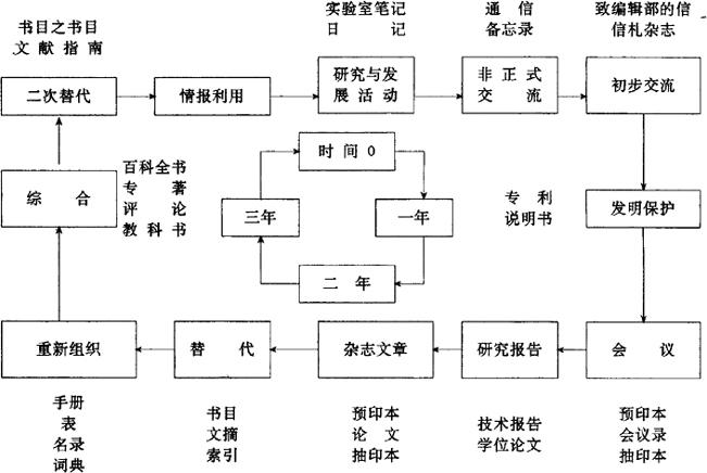 释义 | 系统结构 系统论的观点是现代科学认识论的一个重要观点,人们由孤立单纯的“实物中心论”转向“系统中心论”,这是人们思维方式的重大变化,用系统论观点探讨科技文献的结构,无疑也大有裨益。科技文献的系统观,不是孤立地研究某一具体的特定的文献,而是把科技文献作为一个整体来研究,这就使我们能够从整体性、有序性、动态性的高度探索科技文献的产生、演变和结构,从而使科技文献检索更加有的放矢。 就科技文献整体而言,其内容按层次可分为:一次文献、二次文献和三次文献。其结构如图1.2.1-1所示。 图1.2.1-1 科学文献系统结构图 一次文献(Primary Document)通常是指原始制作,即作者以本人的研究成果为基本素材而创作(或撰写)的文献。如期刊论文、专利说明书、会议论文、科技报告和学位论文等等。此外,还包括一些不公开发表的文献,如实验记录、日记、备忘录、手稿、内部报告、技术档案、信件等。 二次文献(Secondary Document)是指文献工作者对一次文献进行加工整理后所得到的产物,也是为了便于管理和利用一次文献而编辑、出版和积累起来的工具性的文献。它包括书目、索引、文摘等。二次文献的重要性在于可以帮助人们查找一次文献。 三次文献(Tertiary Document)是指利用二次文献,选用一次文献内容而编篡出的成果。如词典、手册、年鉴、百科全书、专着、教科书、论文丛集、述评、文献指南以及书目之目录等等。 科技文献结构示意图表明,从一次文献到二次文献、三次文献是一个博而约、由分散到集中、由无组织到系统化的过程。也是科技文献的层次结构由无序走向有序、由一种有序结构演变成另一种完善的有序结构的过程。 科技文献层次结构的划分只给出了一个侧面,这仅是一种历史的存在,形式上具有稳定性。我们还可以从科技文献的发生与发展的次序,去看它的历时性的变动结构,因为任何结构都有其产生、演变和发展的历史。美国《图书馆与情报科学百科全书》第26卷上画了“科学情报的演变”图,如图1.2.1-2所示。它在一定程度上有助于对科技文献历时性的变动结构进行探讨。 图1.2.1-2 科学情报的演变 在这历时性的变动结构中,可以看到一个新知识有它自己被创立、传递、,并综合到已有知识体系中去的动态过程。科技文献在时间范围内有其本身的演变历史。各种类型的文献是彼此联系,可以转化的,这种转化不是简单的位移,而是在它经历的每个环节中都不断加入了文献着者、编辑者、情报加工者的创造性劳动,逐步使文献中所含的知识得到鉴别、提纯、综合和定型,从而使科技文献在形式和内容上不断满足人们的需求。在这一历时性动态过程中也可以看到单个文献的出现与否或出现的时间可能是随机的、偶然的,但就整体而言,科技文献演变是有内在的逻辑结构、有规律可循的。 了解了科技文献的系统结构,就可以使情报检索有的放矢,减少盲目性。情报传递与情报检索存在着互逆关系。如图1.2.1-3所示。在检索时一般是通过三次文献了解二次文献,查到有关的文献信息,或者通过二次文献获得原始文献的线索,进而尽快地在原始文献中查到所需的知识或信息。 图1.2.1-3 情报检索与情报传递互逆关系图 |