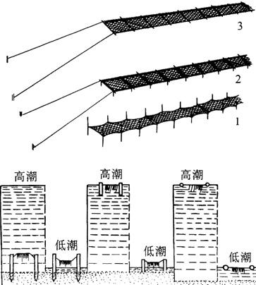 释义 | 紫菜叶状体的养殖 从紫菜网帘下海开始,紫菜的全人工采苗养殖就进入了叶状体养殖阶段。这一过程一般开始于9月中旬至10月中旬前后到翌年3~5月结束。 (一)养殖方式 在中国紫菜养殖方式有菜坛养殖、支柱式养殖、半浮动筏式养殖和全浮动筏式养殖(图6-19)。 1.菜坛养殖 中国福建利用自然海区岩礁生产紫菜,至少已有二三百年的历史。养殖的种类主要是坛紫菜。方法是在每年秋季自然界的紫菜壳孢子大量出现以前,先以机械清除或火把烧除等方法铲除潮间带岩礁表面上附生的各种海产动植物,再向岩礁上洒石灰水二三次以清除岩礁上的各种比较小的附着生物,为紫菜孢子的附着、萌发和生长准备好地盘。一般在最后一次洒石灰水之后不久,就可以在岩礁上长出许多紫菜苗。出苗还需继续进行护苗和管理,当紫菜长10~20厘米时,就可进行采收。 2.支柱式养殖 这种养殖方式是20世纪20年代出现于日本、朝鲜的紫菜人工养殖方式。其方法是在适当的潮间带滩涂上安设成排的木桩或竹桩作为支柱,将长方型的网帘按水平方向张挂到支柱上,进行紫菜的生产。最初编网帘的材料主要是棕绳和细竹条,最近绝大部分采用维尼龙等化学纤维编织网,在紫菜人工养殖事业十分发达的日本和朝鲜,至今仍是一种主要的紫菜养殖方式。中国北方也曾经在20世纪60年代进行过试养,并获得成功。自从出现半浮动筏式养殖法之后,潮间带的紫菜养殖方式,已全部采用半浮动筏式养殖。 3.半浮动筏式养殖 这种养殖方式,是中国福建省在1958年探索出来的。它的筏架结构兼有支柱式和全浮动筏式的特点,即整个筏架在潮涨时可以像全浮动筏式那样经常漂浮在水面上,当潮水退落到筏架露出水面时,它又可以借助短支腿像支柱式那样平衡地架立在海滩上(图6-19)。半浮动筏式和支柱式养殖一样,也是设在潮间带的一定潮位,网帘也是按水平方向张挂。由于网帘在低潮时能够干露,因而硅藻等杂藻类不易生长,对紫菜的早期出苗特别有利,而且生长期较长,紫菜质量好。由于网帘经常漂浮水面故能够接受更多的光照,紫菜生长也比较快。因此,在紫菜人工养殖上,已经被广泛地采用。 图6-19 紫菜三种养殖方式的示意图 上:养殖筏的设置 下:示网帘随潮次而变化的示意图 1.支柱式 2.半浮动式 3.全浮动式 4.全浮动筏式养殖 这种养殖方式适合不干露的浅海区养殖紫菜。在潮间带滩涂面积不大,或近岸受严重污染的地区,采用这种方式就可以把紫菜养殖向离岸较远处发展。它的筏架结构,除了缺少短支腿外,完全和半浮动筏架一样。试验和生产实践表明,对于紫菜叶状体养成是一种相当好的养殖方式。尤其在冬季有短期封冻的北方海区,还可以将全浮动筏架沉降到水面以下来度过冰冻期。全浮动筏式养殖的主要缺点是网帘不干露,这对于紫菜叶状体的健康生长和抑制杂藻的繁生都不利。尤其在网帘下海后的20~30天之内,适当的干露对出苗是非常必要的。因此,如果网帘的干露问题没有得到解决,用全浮动筏式进行紫菜育苗,常常得不到好的出苗效果。用全浮动筏进行叶状体的成菜期养殖,单产并不比半浮动筏式养殖的差。但全浮动筏养殖还存在着菜体容易老化、叶体上容易附生硅藻、产品质量较差、养殖期较短等问题,单产量也不及半浮动筏式养殖稳定。 (二)养殖海区的选择 1.海湾 坛紫菜是一种好浪性的紫菜种类,野生的藻体多见于靠外海风浪较大的岩礁上。因此,东北或东向海湾,坛紫菜生长快,产量高。在北方,条斑紫菜为了减少冬季风浪和流水等危害,一般选择比较温暖不易结冰的南向海湾为宜。 2.底质与坡度 底质与坡度对紫菜的生长影响不大,但与浮筏设置和管理的关系甚为密切。一般认为以泥砂底质或砂泥底质为宜。这样的底质,变动性一般不大,便于设置筏架和管理;凹凸不平的岩礁底质不适于养殖;软泥底质,因风浪的影响,海区浮泥太多,紫菜育苗及养成管理都比较困难。 坡度的大小,直接影响半浮动筏式养殖面积的利用和浮筏的安全,而对全浮动筏式养殖影响不大。坡度小而平坦的海滩,可养面积大,潮浪的逆涛(回浪)冲击力小,浮筏安全。 3.潮位 一般潮位高紫菜生长慢、产量低;潮位低紫菜生长快,但杂藻繁殖也快,这种潮位对紫菜育苗不利,同时对养殖期间的管理、收割也不便。因此,目前养殖区一般都选择在小潮干潮线附近的潮位上,大小潮平均干露1.5~5小时,凡是在这个潮位范围内,均可选作半浮动筏式养殖区,而在退潮时不能干露的广大浅海区,则是全浮动筏式养殖的适宜海区。一个好的港湾,常常可以同时具备两种方式所需要的养殖条件。 4.风浪与潮流 风浪对紫菜的生长是必不可少的条件,虽然较强的风浪对养殖器材的破坏性大,但不损坏养殖设施的风浪对紫菜养殖是有利的。紫菜生活中所需要的营养盐、氧气、二氧化碳等,都是由海水带来的,而海水中所不足的二氧化碳则主要是由空气中溶入,促进空气溶入的是风浪,由于风的作用而掀起的波浪,扩大了接触空气的水面积,空气的溶入量加大,而且风浪还促进了海水的流动与交换,带来丰富的营养盐。因此,养殖海区应该选在常有风浪的地方。 潮流对紫菜的生长也是不可缺少的条件。潮流畅通,能促使水质新鲜、紫菜的新陈代谢作用加快,养殖期延长;潮流缓慢,浮泥杂藻多,病菌繁殖快,紫菜生长缓慢,且易发病。因此,对于一个紫菜养