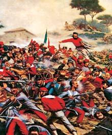 释义 | 红衫军 也叫“千人义勇军”。 意大利*加里波第组织的志愿军,因着红衫,故名。1860年5月加里波第率一千余战士从热那亚出发,在西西里马尔萨拉(Marsala)登陆,与当地起义者汇合,解放西西里,继而解放那不勒斯。从此,“红衫军”便成为加里波第统率的军队的泛称。 红衫军在马尔萨拉登陆(绘画) |