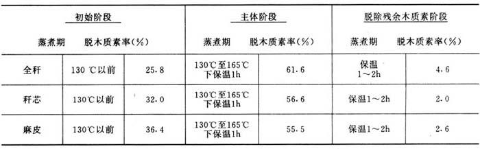 注:原料中克拉森木质素含量为:全秆17,62%,秆芯20.82%,麻皮9.89%。