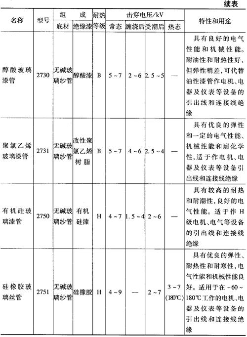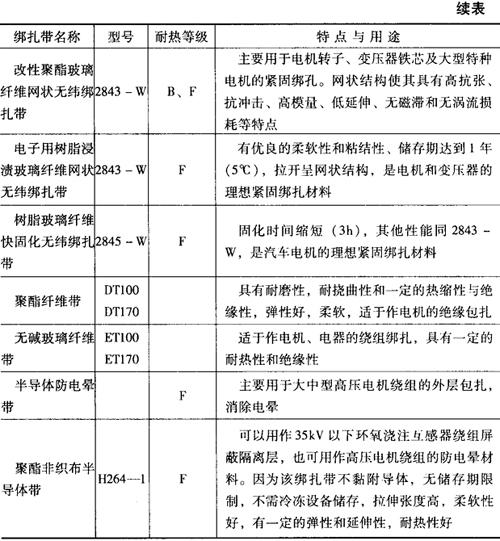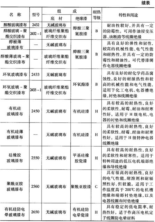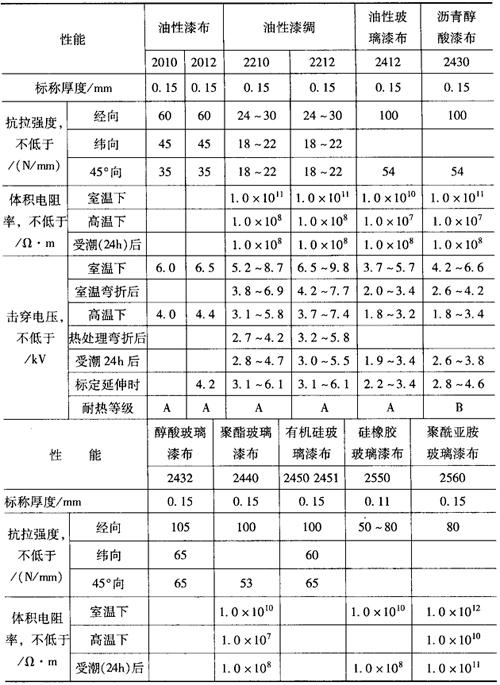 释义 | 纤维绝缘制品 浸渍纤维制品是以绝缘纤维制品作为底材,浸以绝缘漆制成的。浸渍纤维制品的底材,一般使用棉布、薄绸、玻璃纤维、玻璃布、玻璃纤维和合成纤维交织物等。浸渍纤维制品主要用于电机、电器、仪器仪表等电工产品的线圈层间绝缘或作衬垫及引出线或连接线的绝缘。 1.漆布 漆布是以不同的底材浸以相应的绝缘漆,经烘干后制成。其品种、组成、特性和用途及电气、机械性能分别见表13-7、表13-8。 表13-7 漆布的品种、组成、特性和用途 表13-8 绝缘漆布的性能 注:有机硅玻璃漆布中2450为软型,2451为硬型,后者具有较高的抗拉强度。 漆布在使用过程中要注意下列几个问题: (1)经纬线垂直编织的漆布在使用时可按平行于经纬线或与经线成45°±2°角切成带子。平行剪切的延伸率较小,适宜于包绕截面相同、形状规则的线棒、线圈等;斜切的延伸率较大,包绕时可紧贴被包物,减少形成折皱和气囊,但应注意不要用力太大,以免损伤漆膜。 (2)玻璃漆布一般均按45°±2°角斜切,以增加延伸率。使用玻璃漆布时要严格防止180°的折叠,对已包绕好的绝缘件不能敲击,否则会造成机械损伤。 (3)由漆布组成的电机、电器绝缘结构,一般都须进行浸渍处理。因此,应当注意漆布和浸漆的相容性问题。如果浸渍漆选择不当,在浸渍处理过程中会发生漆布表面漆膜膨胀或脱落现象。常用漆布与绝缘漆的相容性见表13-9。 表13-9 常用浸渍漆与漆布的相容性 注:相容性顺序是:优、良、可。0表示不推荐。 2.漆管 绝缘漆管是由相应的纤维管浸以不同的绝缘漆经烘干而成。绝缘漆管的常用品种、组成、性能及用途见表13-10,漆管的规格见表13-11。 表13-10 漆管的品种、组成、性能和用途 表13-11 常用漆管的规格 3.绑扎带 绑扎带是以经过硅烷处理的长玻璃纤维,经过整纱并浸以热固性树脂制成的半固化带状材料,又称无纬带。绑扎带按所用树脂种类分为聚酯型、环氧型等几类。绑扎带主要用来绑扎变压器铁芯和代替无磁性合金钢丝、钢带等金属合金材料、绑扎电机转子。电工绑扎带的名称、型号、用途见表13-12。 表13-12 绑扎带 |