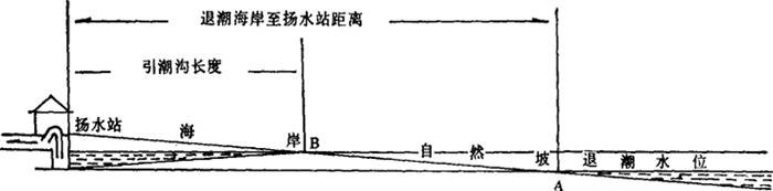 图2-6-1说明:必须在潮水由A点涨至B点之后,才能开车扬水。要延长开车时间,必须将扬水站移向A点,或延伸引潮沟长度。