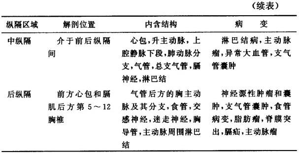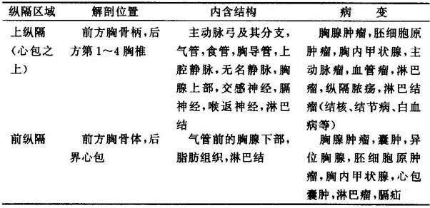 纵隔的划分、解剖位置、结构和病变见表3-8。