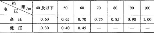 释义 | 线路最小线间距离 架空线路导线间的最小距离见表12-66。 表12-66 架空线路导线间的最小距离/m 注:①表中所列数值适用于导线的各种排列方式; ②靠近电杆的两导线间的水平距离,对于低压线路不应小于0.50m。 |