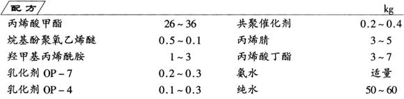 释义 | 织物硬挺胶黏剂 制法 (1)在装有搅拌器、冷凝器、温度计及滴液漏斗的反应器中,依次按配比量加入丙烯酸甲酯、丙烯酸丁酯、丙烯腈、羟甲基丙烯酰胺,再加入2/3体积的纯水、共聚催化剂、烷基酚聚氧乙烯醚、乳化剂OP-7、乳化剂OP-4,快速搅拌30~40min,经充分乳化后将此乳化液移入滴液漏斗中待用。 (2)在反应器中加入剩余的1/3量纯水、共聚催化剂、烷基酚聚氧乙烯醚、乳化剂OP-7、乳化剂OP-4及上述1/5量的乳化液。然后在不断搅拌下升温至80℃保温30min。 (3)将剩余的4/5量乳化液通过滴液漏斗缓慢地加至反应器中,加入速度约2h,并不断搅拌。 (4)乳化液加完后,再将反应器升温至82~85℃,保温约1h,蒸出未反应的单体。 (5)将反应物冷却至室温,加入适量氨水调节pH值为7~7.5后,搅拌均匀,即为成品。使用时,将要处理的织物经皂洗、漂白等预处理后,再浸润织物硬挺胶黏剂工作液,并经烘干等工序即可。 |