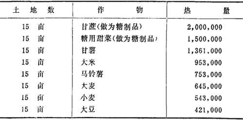 表1-1 在15亩土地上一年间生产的热量可供给营养的人数