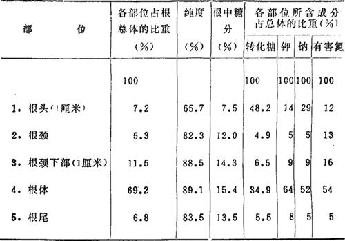 表1-5 甜菜块根和茎叶中的一般成分含量