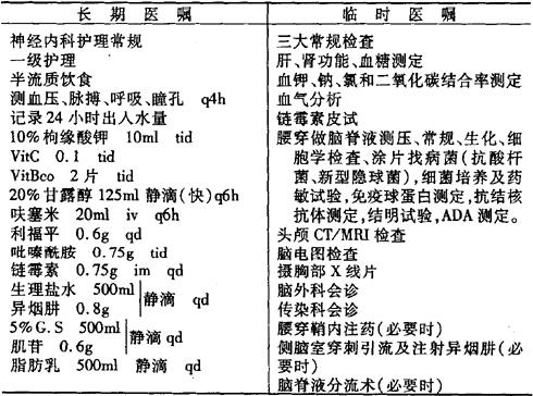 释义 | 结核性脑膜炎 说明:(1)抗结核治疗应早期、足量、足疗程、联合、系统用药,急性期应尽量争取静脉途径给药。 (2)目前主张联合应用3~4种杀菌剂抗结核治疗,常用方案为异烟肼+利福平+链霉素+吡嗪酰胺或异烟肼+利福平+链霉素+乙胺丁醇。 (3)一般主张症状控制后仍需用药,总疗程1年至1年半,链霉素总剂量可用至60~80g。 (4)对于重症、颅底蛛网膜粘连及脊髓型患者在口服及静脉应用抗结核药的同时,应采取鞘内给药;常用给药方法为异烟肼(50~100mg/次)+地塞米松(1~3mg/次),鞘内注入,2~3次/周。 (5)肾上腺皮质激素可用来治疗和预防结脑患者的蛛网膜粘连,但一定要在应用足量抗结核药物的前提下使用,否则将引起结核扩散,给药途径可通过口服、静滴或鞘内给药。 (6)抗痨药物均可引起严重的副反应,用药过程中应密切观察,如肝、肾功能损害,耳蜗前庭神经损害,视力下降等,可相应使用保护性药物。 (7)加强营养,改善全身状况,增强抵抗力,维持水电解质平衡是结核性脑膜炎治疗中不可缺少的部分,应给予足够的重视。 (8)结核性脑膜炎已控制,疑有梗阻性脑积水者,可行外科分流术。 |