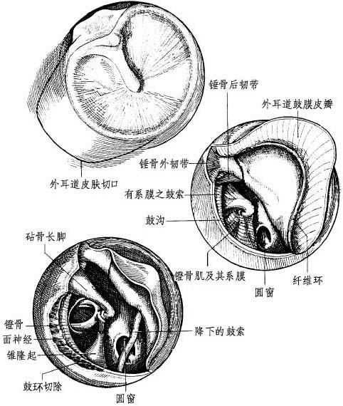 释义 | 结论 鼓室手术途径有: 1 .经外耳道途径,在剥离部分或全部皮肤后所涉及到的部分鼓膜(Sourdille鼓膜耳道瓣)。 2.在上鼓室,经一孔窗或经鼓室天盖(岩上途径)进入鼓室上隐窝壁。 3 .在鼓室房的后壁,达后鼓室区,经乳突途径(后鼓室探查术)。 4.在下鼓室,经外耳道途径(骨部耳道途径)。