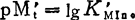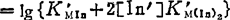 对1∶1络合物MIn,],当[MIn]=[In]时,指示剂的颜色发生改变,此时,pMt=lgKMIn。若考虑副反应,