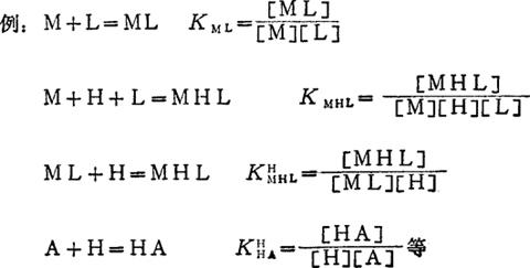 A——络合剂(指络合滴定中掩蔽剂、辅助络合剂等)
