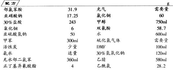 释义 | 绿黄隆 制法 (1)邻氯苯磺酰氯的制备 在500ml四颈烧瓶中,先加入邻氯苯胺31.9g,在搅拌下将反应物冷至0℃。开始滴加30%盐酸143g,约在30min左右加完。待内温冷却至0℃时,开始缓慢滴加17.25g亚硝酸钠溶液,约60min加完,反应温度不得超过5℃。这时用碘化钾淀粉试纸测定终点。到达终点后,再加入30%盐酸100g、氯化铜6g,搅拌30min,待氯化铜完全溶解后,再加入亚硫酸氢钠50g,反应温度保持在0~5℃,继续反应2h。反应结束后,用甲苯100ml萃取3次,合并甲苯萃取液,用水洗涤3~4次,至pH值为4~5为止。甲苯溶液加少量活性炭脱色、过滤,甲苯液进行减压浓缩,回收甲苯,得红色油状液体53g,含量90%(气相色谱分析),收率84.6%。 (2)邻氯苯磺酰胺的制备 在250ml四颈烧瓶中,加入邻氯苯磺酰氯53g,在搅拌下将体系加热至40℃,然后滴加氨水69g,约在30min内加完,然后继续搅拌反应2h,加水100ml搅拌10min,进行过滤,滤饼用水洗涤数次,烘干,得白色针状结晶36.63g,收率90%,含量96%(液相色谱分析),熔点188~190℃。 (3)邻氯苯磺酰异氰酸酯的制备 在500ml四颈反应烧瓶中,加入无水邻二氯苯360ml、邻氯苯磺酰胺60g,在搅拌下回流脱水30min,至回流出的二氯苯澄清为止。将反应物冷却至50℃,加入正丁基异氰酸酯4g,加热至120℃左右,开始通光气2h,反应结束后,再搅拌反应60min。减压回收邻二氯苯,然后再减压蒸馏,收集130~140℃/133.3Pa的馏分,得淡黄色油状液体40.3g,含量98%,收率60%。 (4)胺基-O-甲基异脲氯化铜的制备 在1000ml三颈烧瓶中,先加入氯化铜60g,在搅拌下加甲醇300ml,双氰胺58.7g,然后边搅拌边缓慢加热至65℃,回流反应5h,反应结束后冷却至室温,过滤。滤渣用150ml甲醇洗涤3次,烘干,得粉红色胺基-O-甲基异脲氯化铜123g,含量96%,收率96.1%。 (5)胺基-O-甲基异脲盐的制备 在2000ml三颈瓶中,加入胺基-O-甲基异脲氯化铜络合盐120g,水600ml,在搅拌的情况下通入硫化氢气体6h。反应结束后滤去生成的硫化铜沉淀。滤液减压浓缩去大部分溶剂后,加入100ml的DMF,搅拌片刻,即有白色结晶析出。过滤,滤渣用少量乙醇洗涤,烘干后,得白色胺基-O-甲基异脲盐酸盐结晶94.9g,含量98%,收率85%。 (6)2-氨基-4-甲氧基-1,3,5-三氮均嗪的合成 在500ml三颈烧瓶中,加入30%氢氧化钠水溶液120ml,乙腈240ml,在搅拌下冷却反应物到5℃以下,加入胺基-O-甲基异脲盐酸盐32.4g,边搅拌边滴加28.2g乙酰氯和20ml乙腈的混合液,约30min加完。然后在35℃搅拌反应2h,蒸去乙腈,加水100ml,搅拌片刻,过滤,滤渣用水洗3次,干燥后得白色固体20.8g,含量98%,熔点258~260℃,收率70%。 (7)绿黄隆成品的合成 在500ml三颈烧瓶中,加入乙腈溶剂320ml,邻氯苯磺酰异氰酸酯40g,2-氨基-4-甲氧基-1,3,5-三氮均嗪25.7g,加完后于室温25℃搅拌反应24h。反应结束后,进行过滤,滤渣用少量乙腈洗涤。烘干得白色结晶绿黄隆59.6g,含量95%,熔点169~172℃,收率90.6%。 绿黄隆是一种超高效除草剂,具有不寻常的除草活性。 |